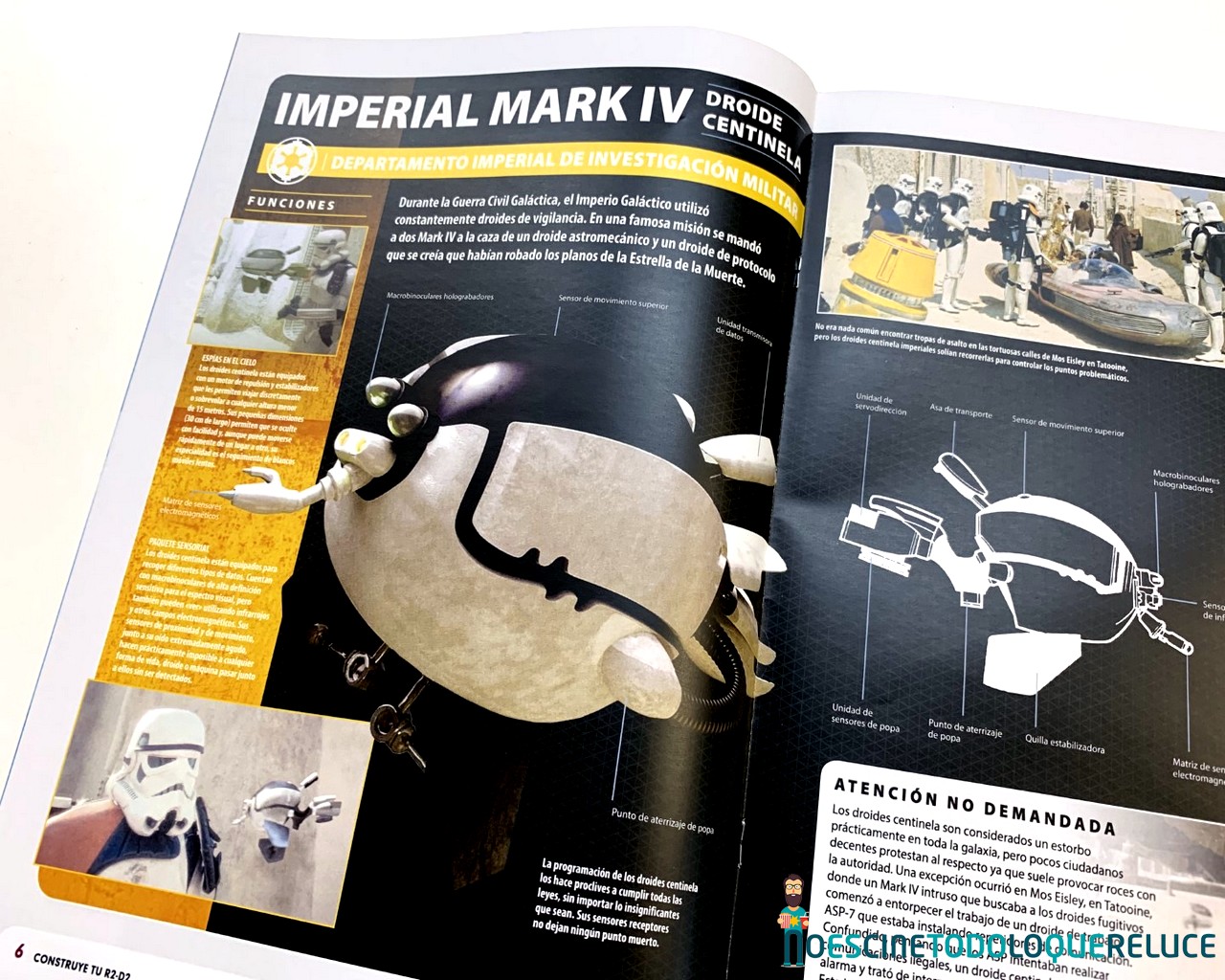 Pero no sólo podremos ir montando a R2-D2, pues cada entrega viene acompañada de un fascículo de una completa obra editorial dividida en tres secciones principales: