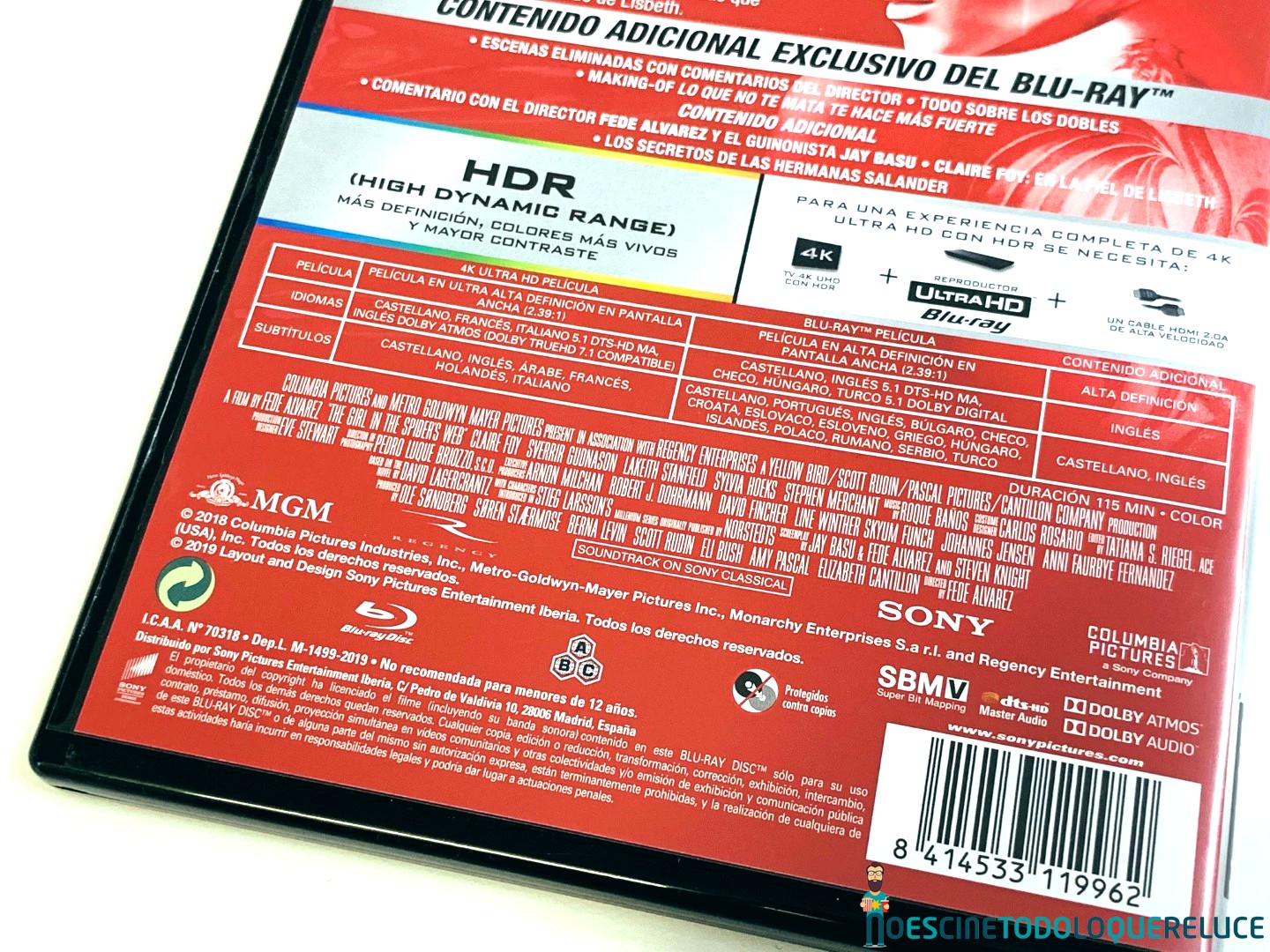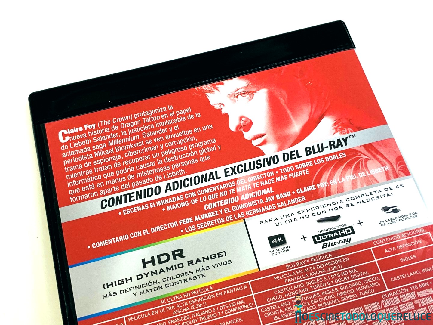 Gracias a Sony Pictures Home Entertainment España os ofrecemos un análisis y un reportaje fotográfico de la edición en 4K UHD de esta película en la que la icónica hacker justiciera Lisbeth Salander está encarnada por Claire Foy, una de las mejores actrices de su generación, ganadora de un Globo de Oro y un Premio Emmy por su inolvidable interpretación de la reina Isabel II en las dos primeras temporadas de la serie The Crown. En su faceta cinematográfica, Foy ha estado nominada a los Globos de Oro y los Premios BAFTA como mejor actriz de reparto por First Man – El primer hombre.
