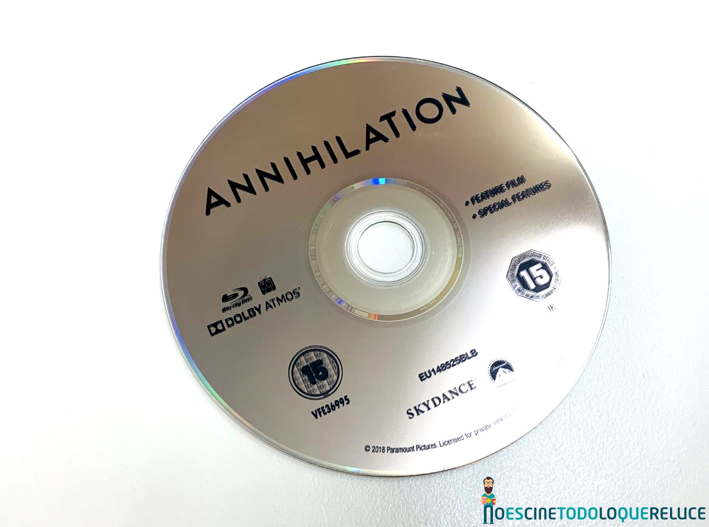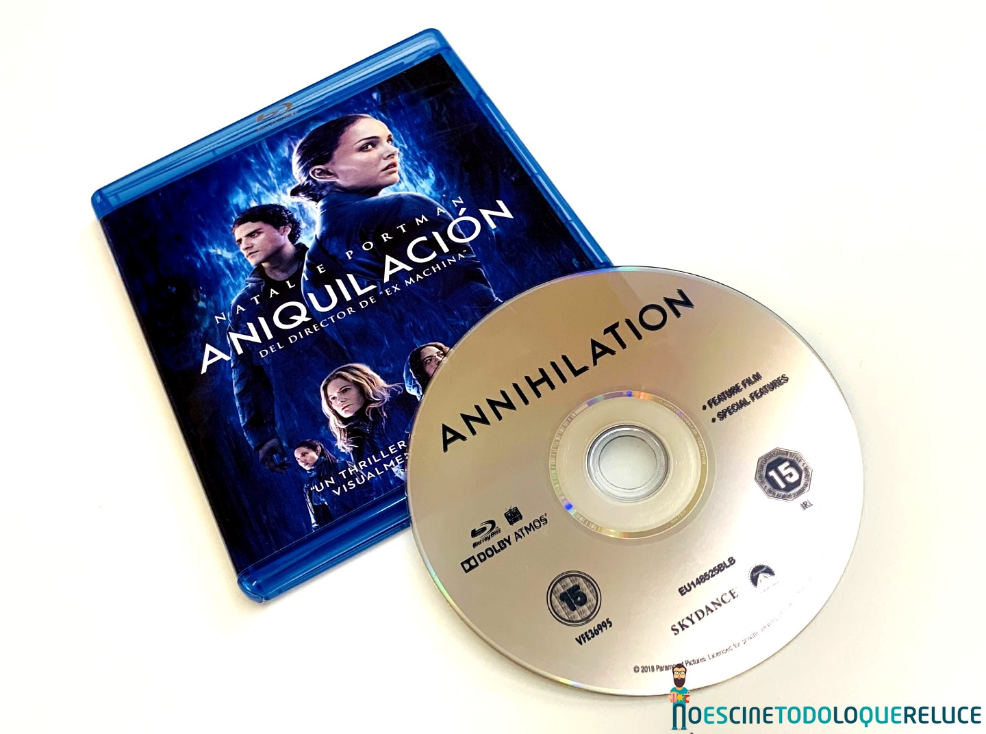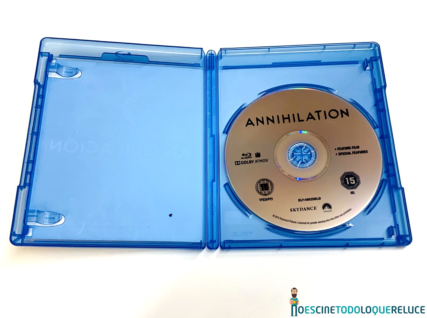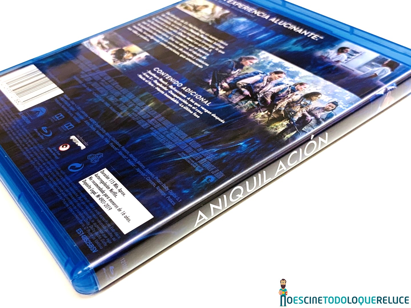 La edición Blu-ray de Aniquilación está presentada en el clásico estuche azul con un póster de la película en la portada, mientras que la contraportada nos presenta una selección de imágenes de la misma junto a los datos técnicos, artísticos y sinopsis. En el interior nos encontramos el disco Blu-ray serigrafiado con el título original de la película.