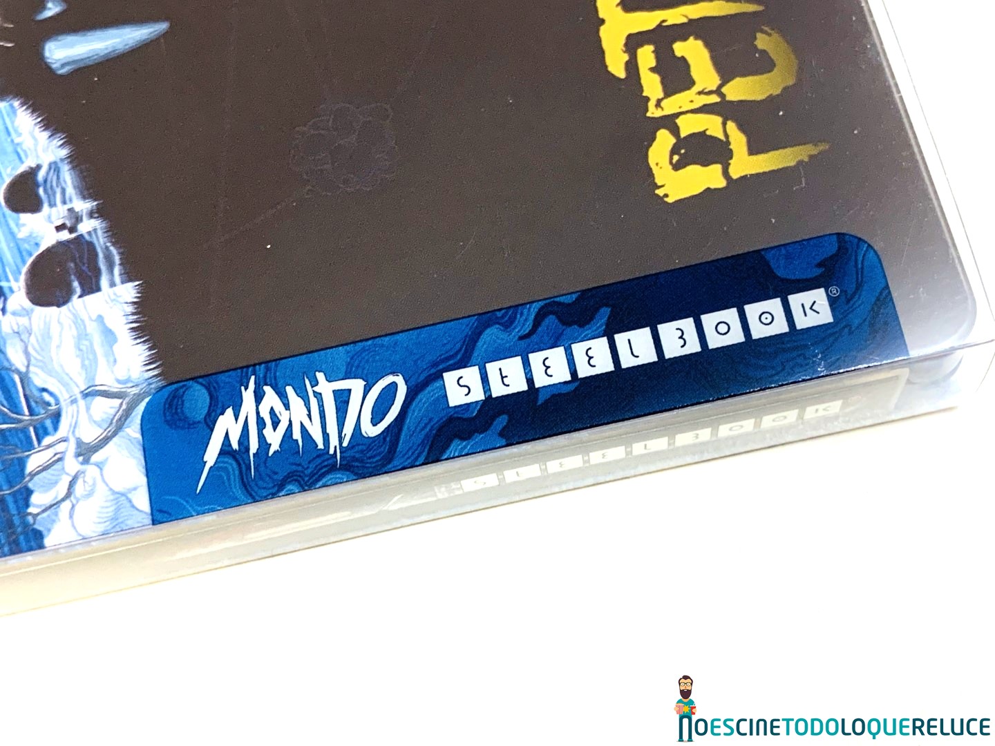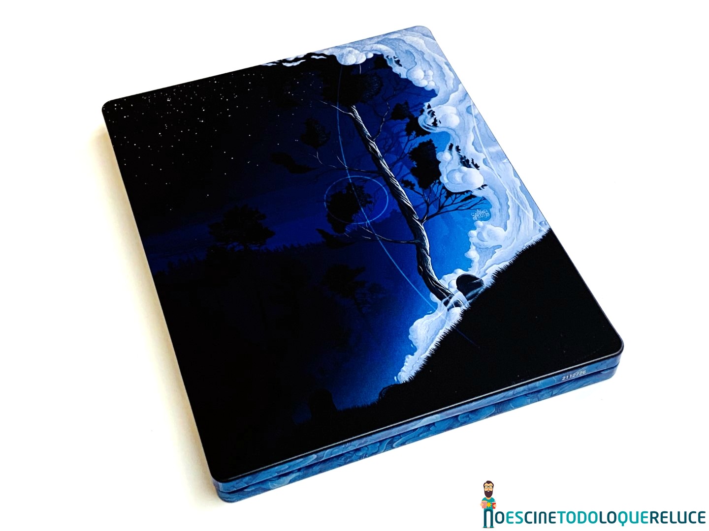El steelbook viene protegido por una funda transparente, con algunos detalles ilustrados a juego con el mismo, y donde está pegado el papel (de fácil despegado) con el título en español, mientras que en la parte trasera nos ofrece la sinopsis, detalles técnicos y artísticos y algunas fotos de la película.