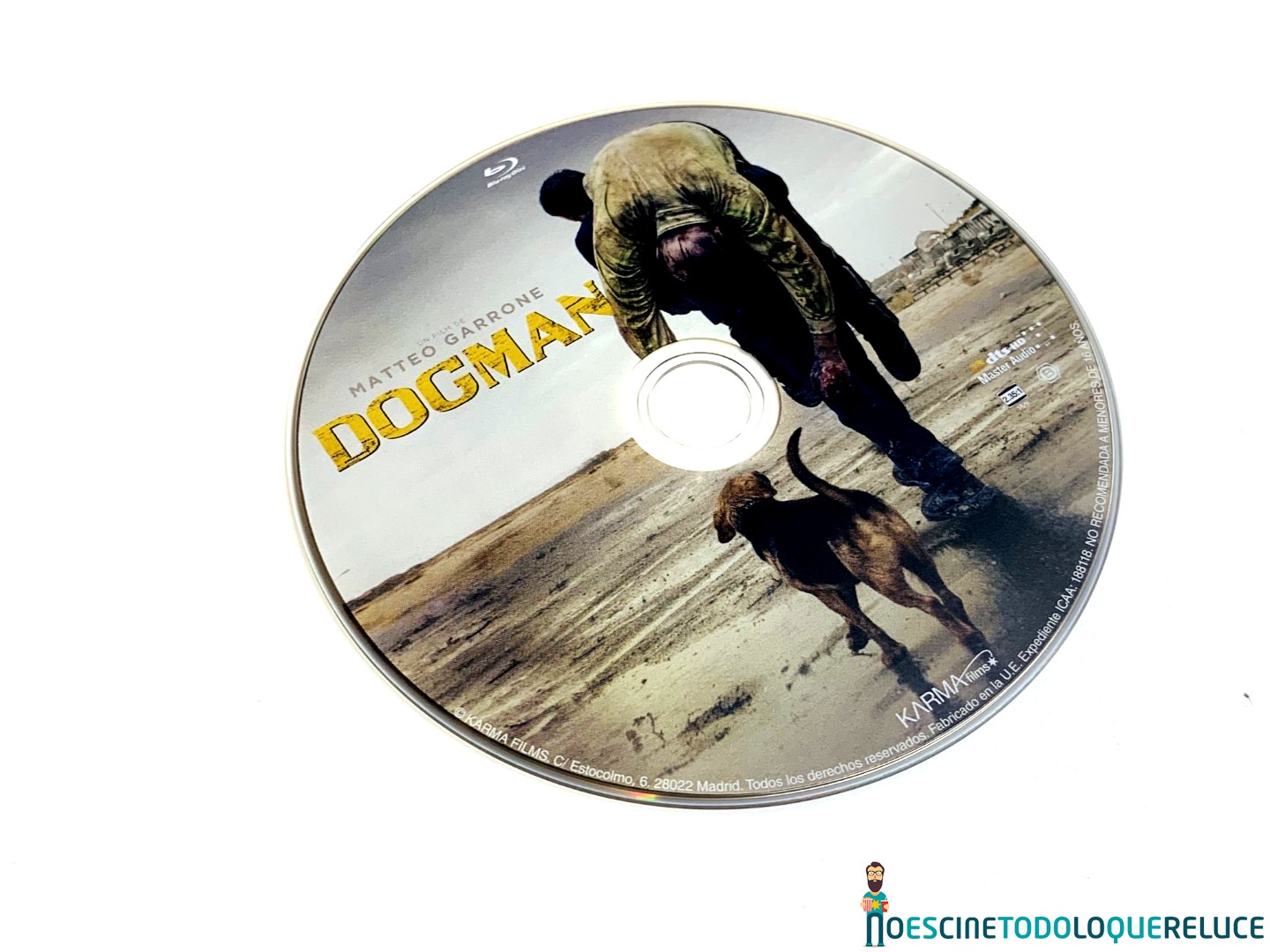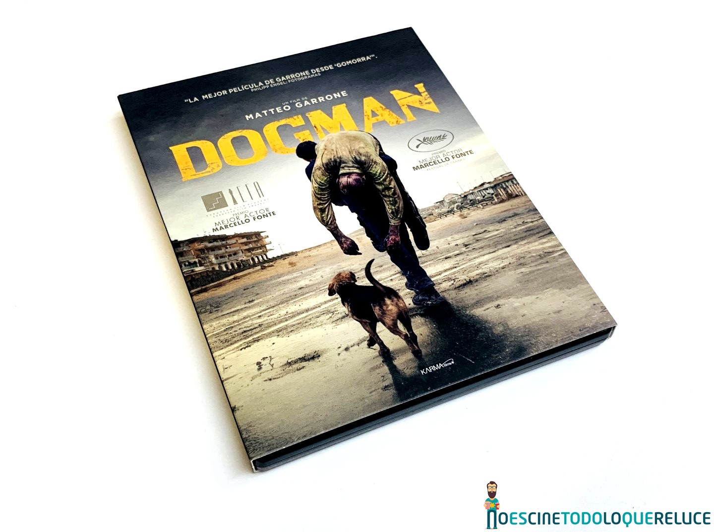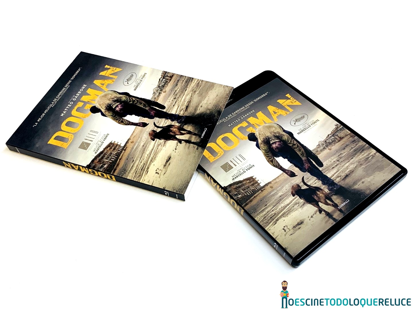 La edición Blu-ray de Dogman está presentada en una elegante funda slipcover que protege un estuche de color negro, ambos con el mismo diseño de portada y contraportada, ofreciendo en la parte frontal el póster de la película, mientras que la contraportada nos presenta una selección de imágenes de la misma junto a los datos técnicos, artísticos y sinopsis. En el interior nos encontramos el disco Blu-ray serigrafiado con la misma imagen de la portada.