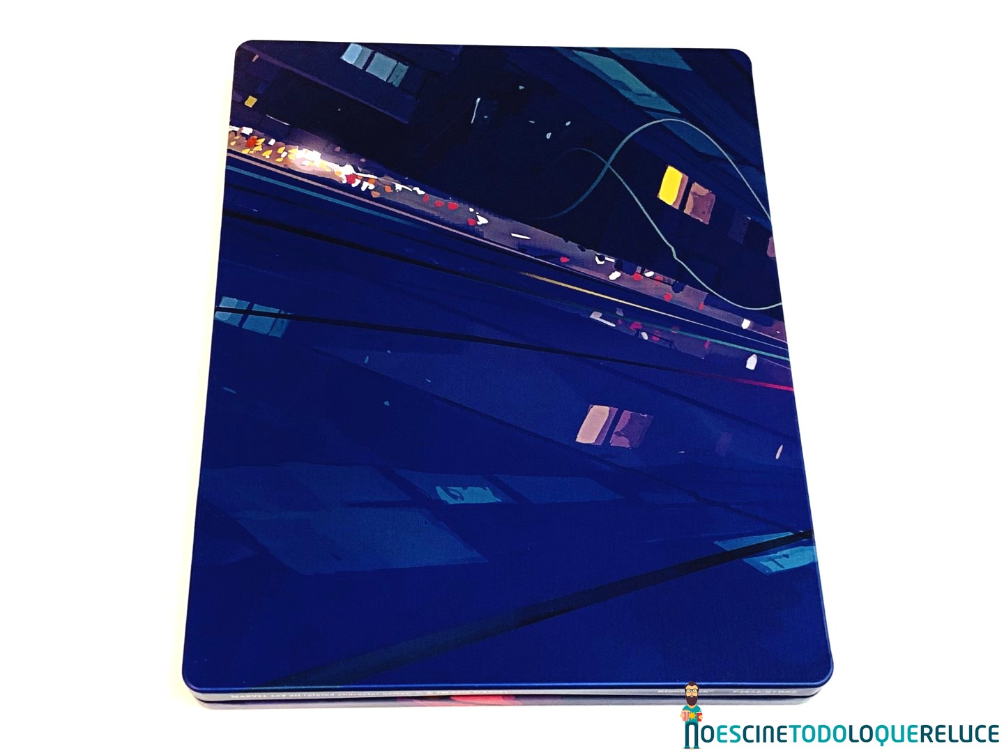 El título español así como los discos y el artbook que incluye son indicados en la parte frontal del papel satinado pegado al steelbook, en cuya parte trasera nos muestra la sinopsis, detalles técnicos y artísticos y una ilustración de la película.