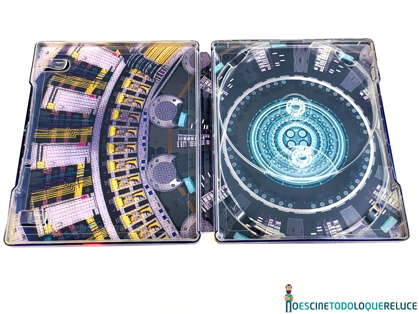 En su interior nos encontramos una ilustración, e incluye los dos discos físicos serigrafiados con una imagen promocional de la película distinta cada uno y el título español.