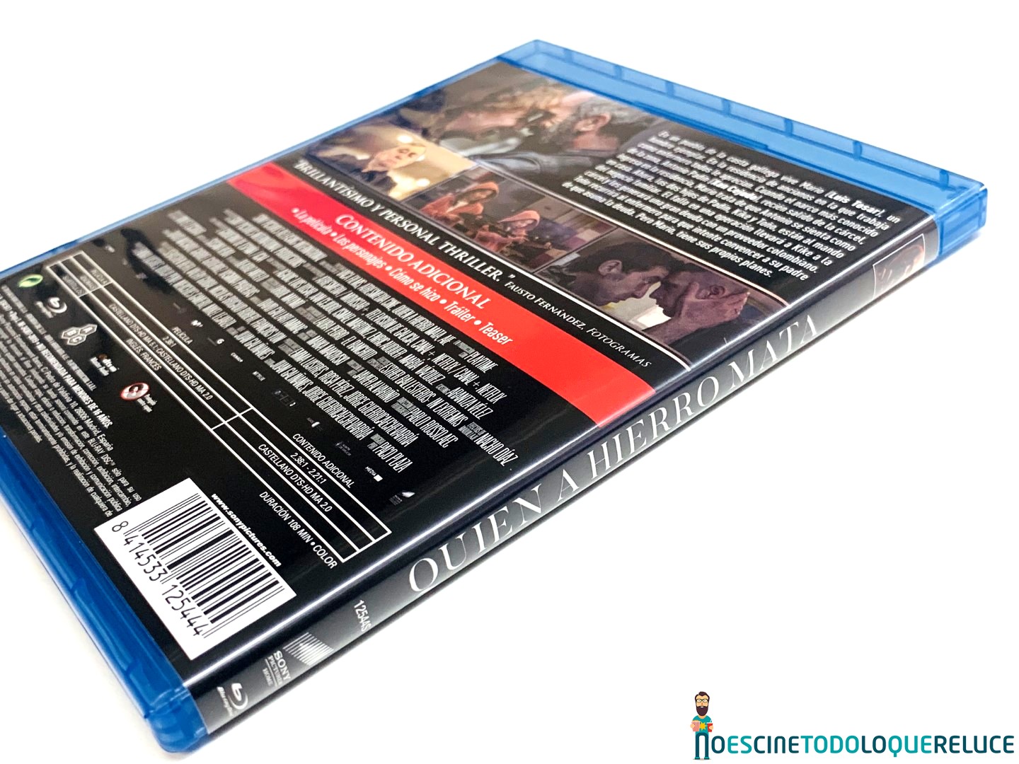 La edición Blu-ray de Quien a hierro mata está presentada en el clásico estuche azul con el póster de la película en la portada, mientras que la contraportada nos presenta una selección de imágenes de la misma junto a los datos técnicos, artísticos y sinopsis. En el interior nos encontramos el disco Blu-ray serigrafiado con la imagen de la portada.