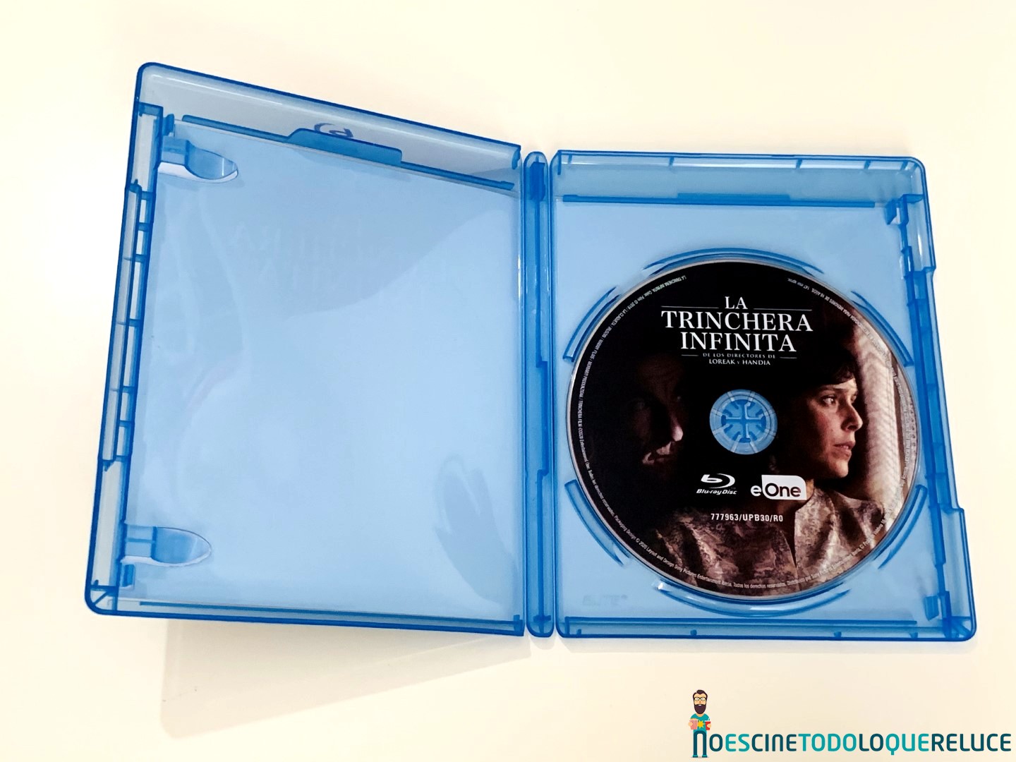 La edición Blu-ray de La trinchera infinita está presentada en el clásico estuche amaray azul, con el póster oficial en la portada, mientras que la contraportada nos presenta una selección de imágenes de la película junto a los datos técnicos, artísticos y sinopsis. En el interior del estuche nos encontramos el disco Blu-ray con el título español sobre la misma imagen de la portada.
