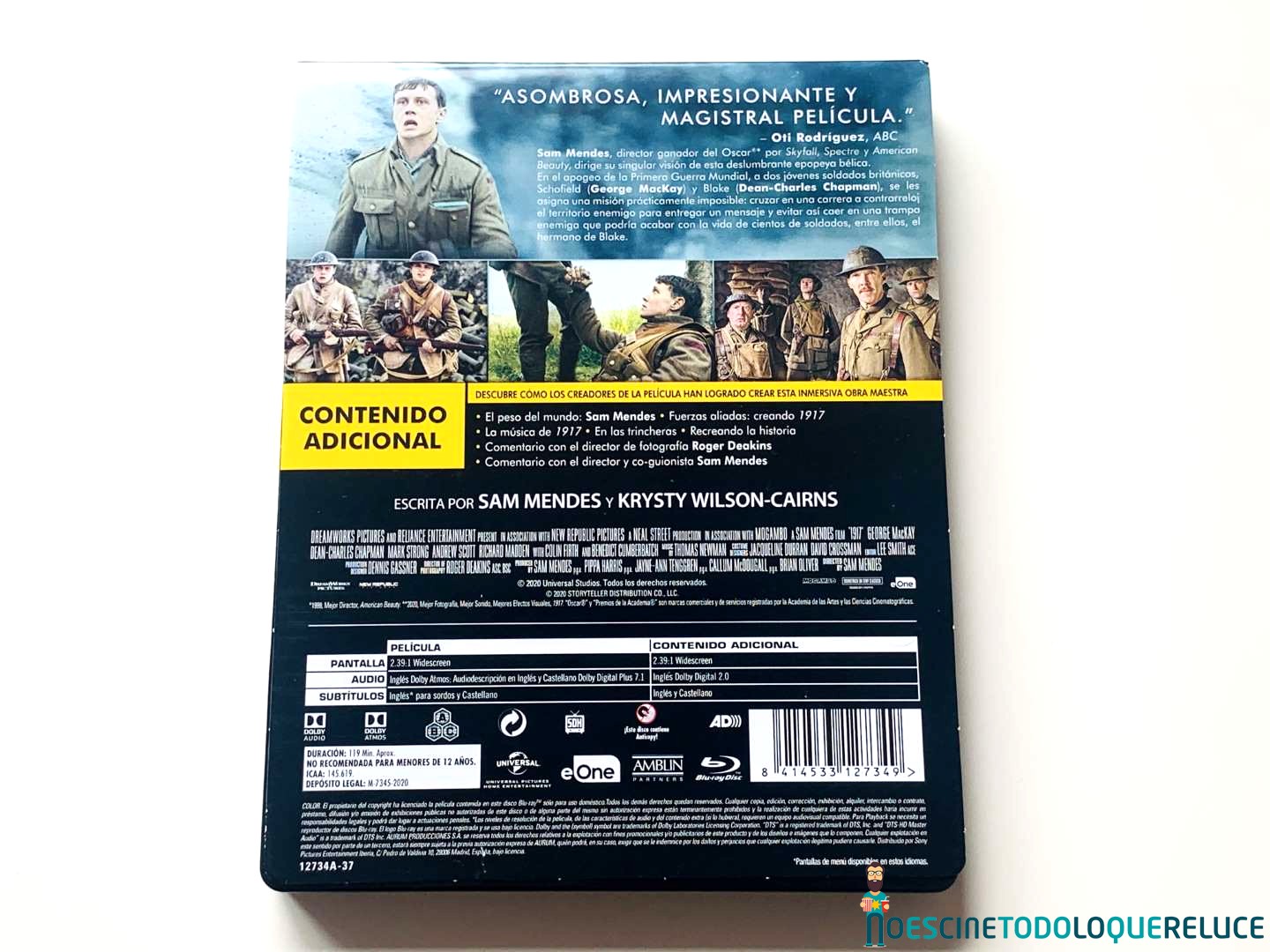 Ya está disponible en 4K UHD, Blu-ray, edición limitada Blu-ray en caja metálica y DVD 1917, la espectacular película alabada por la crítica y multipremiada, y gracias a Sony Pictures Home Entertainment os ofrecemos más detalles y un reportaje fotográfico de la edición metálica limitada de esta obra universalmente aclamada que aúna una realización magistral, interpretaciones memorables y una inolvidable visión del ser humano enfrentado al devastador contexto de la guerra.