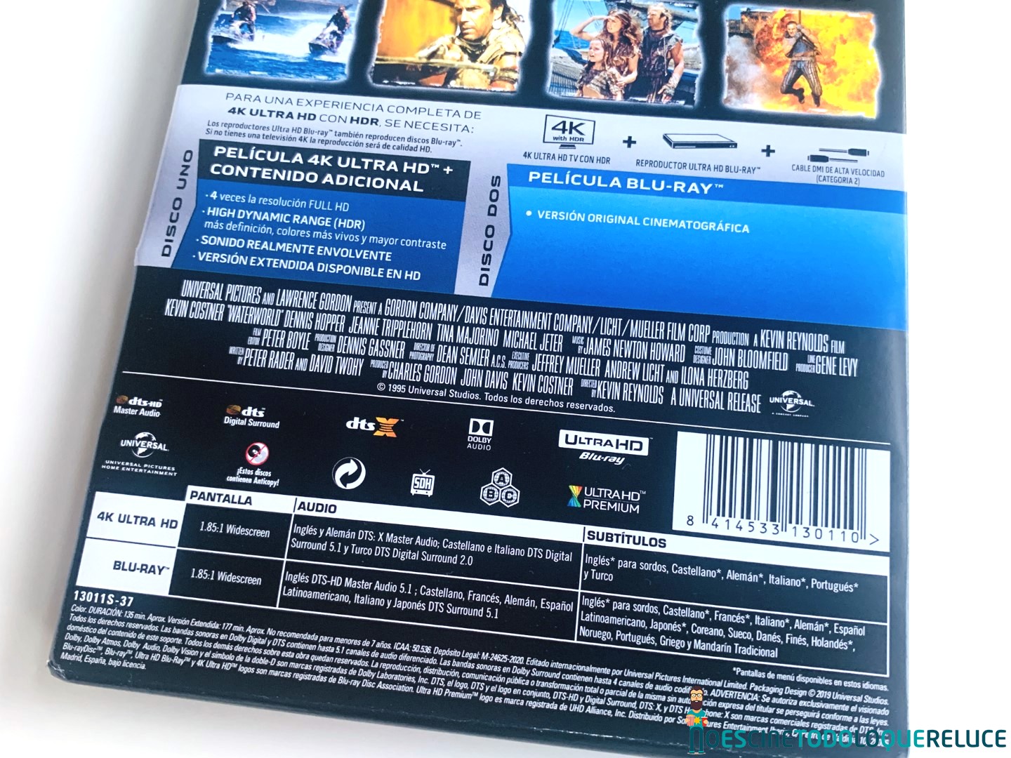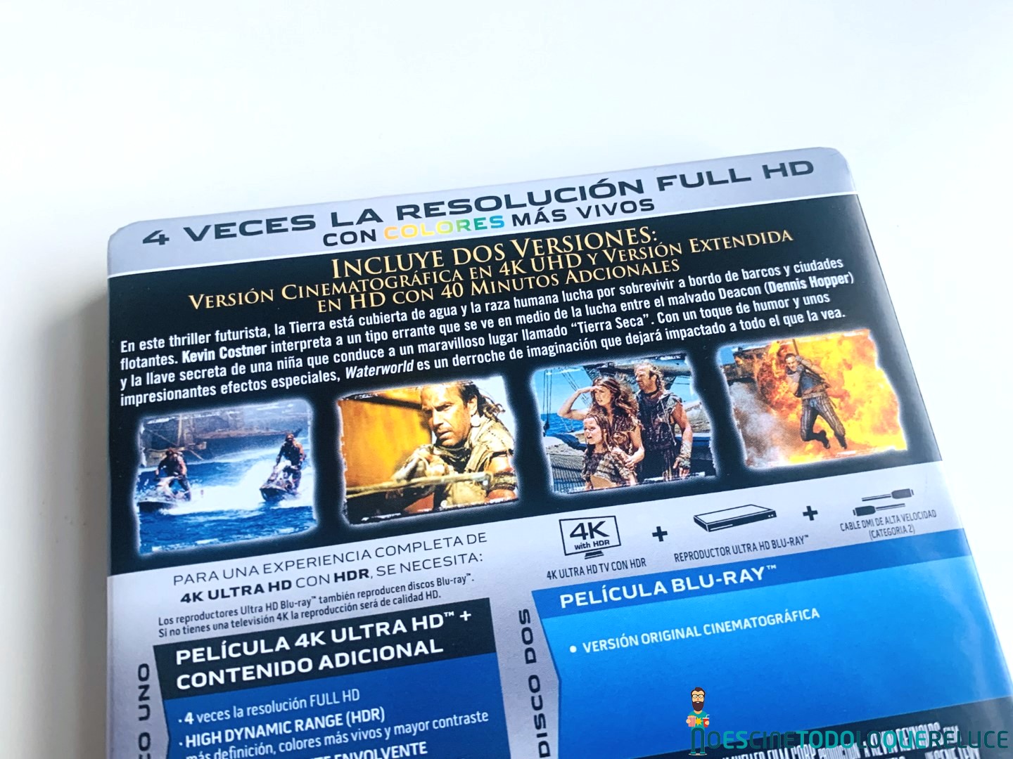 Desde el pasado 26 de noviembre, a los 250 títulos disponibles se han incorporado nuevas joyas en 4K UHD, como una nueva edición metálica de Waterworld (Universal Pictures, 1995), de la que os ofrecemos el análisis y un reportaje fotográfico, e incluye dos versiones de la película: Versión cinematográfica en 4K UHD y versión extendida en HD con 40 minutos adicionales.