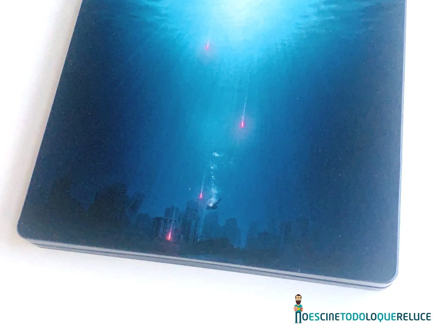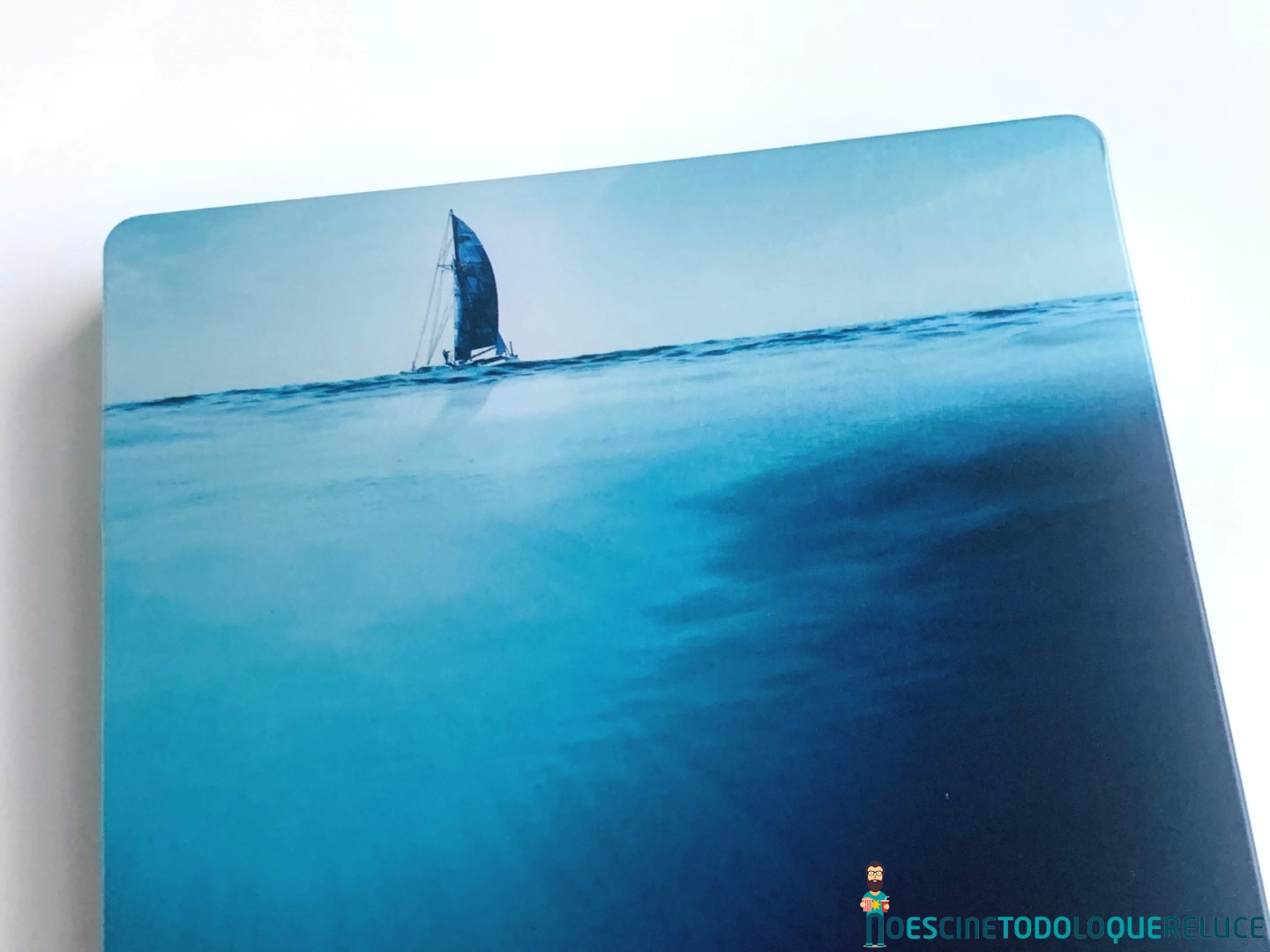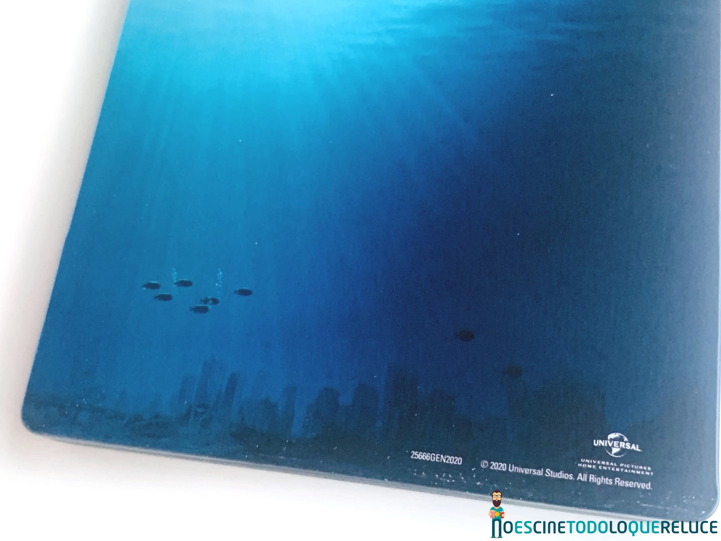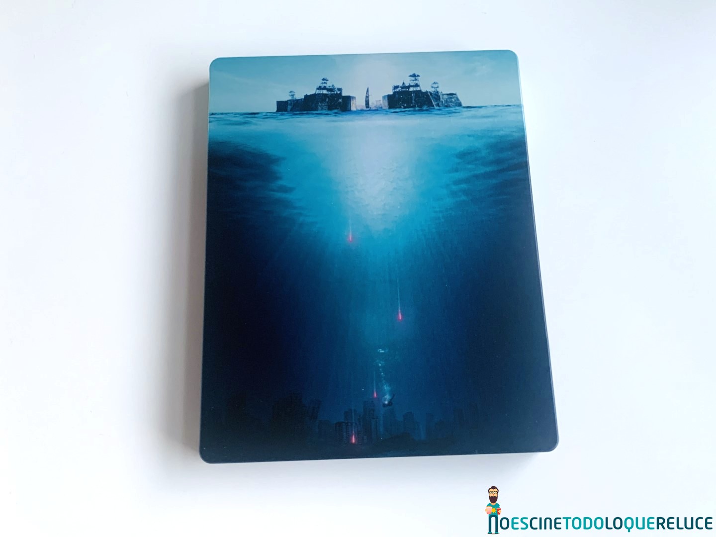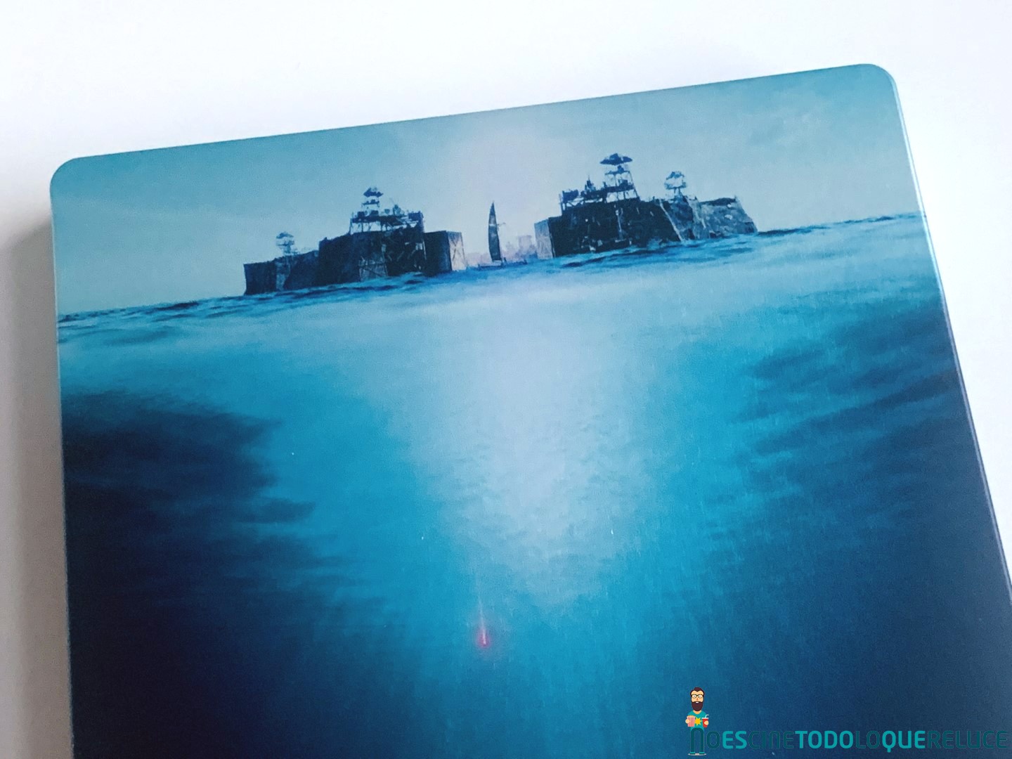 El diseño de portada y contraportada es minimalista, acaparado por el auténtico protagonista de la película, que es el agua, con el título de la película tan sólo en el lomo, y un tono azul océano tanto en frontal y contraportada donde apreciamos las grandes ciudades flotantes y un barco, siendo una imagen que se aprecia completa con el estuche abierto.