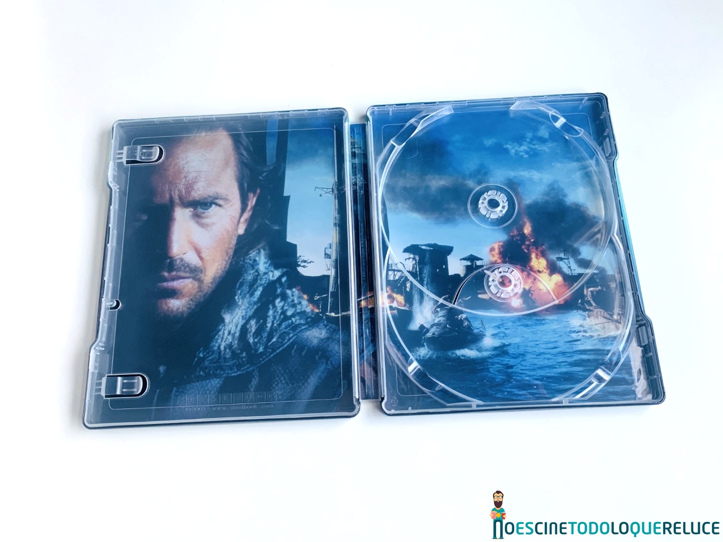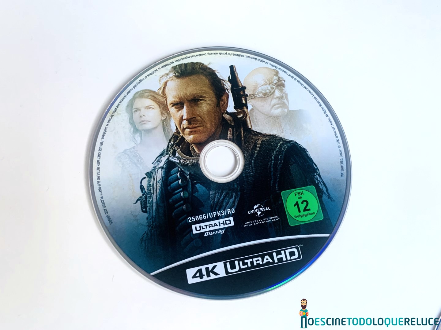 El interior del Steelbook nos deja una imagen de Kevin Costner justo en el lado limpio, al lado de la parte que alberga los discos, tanto 4K UHD como Blu-ray, cada uno de ellos con una serigrafía diferente.