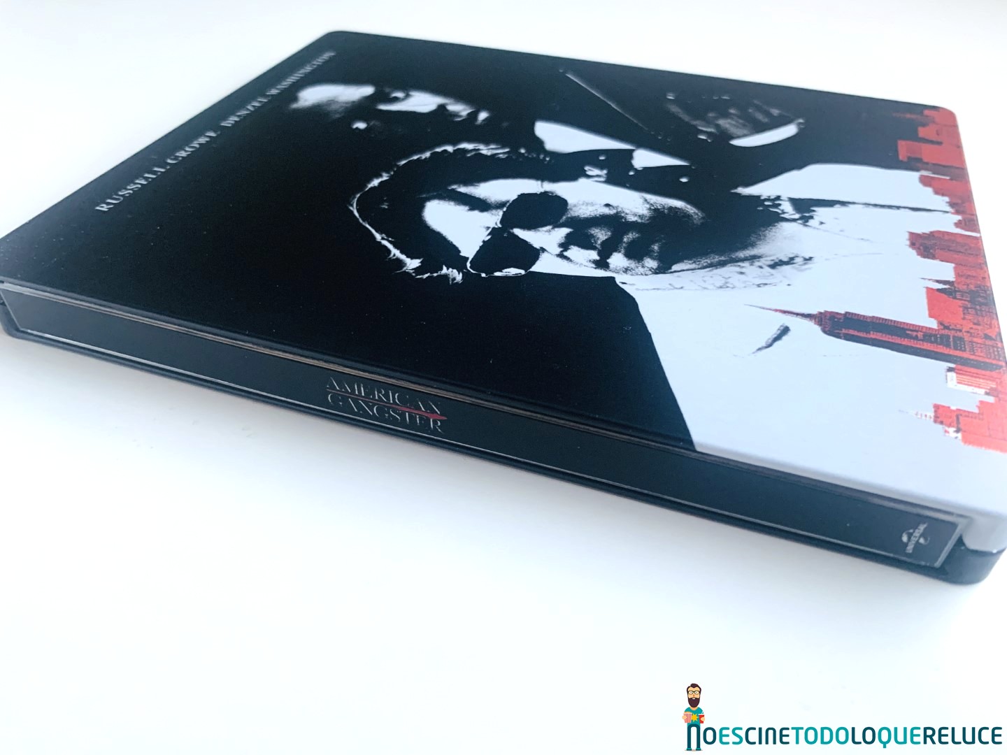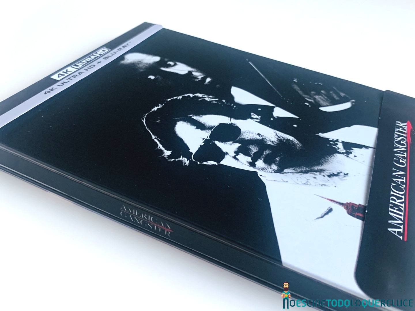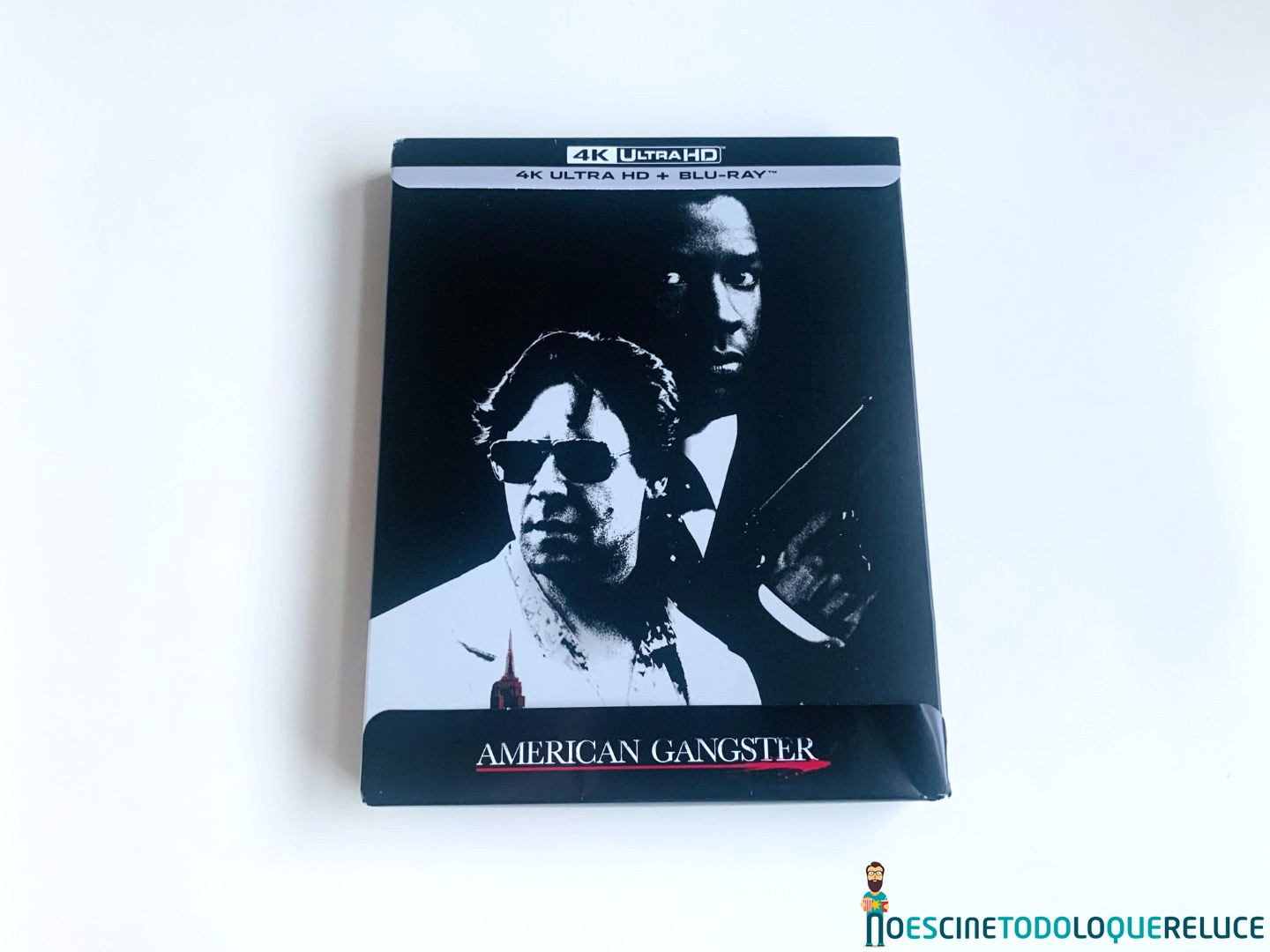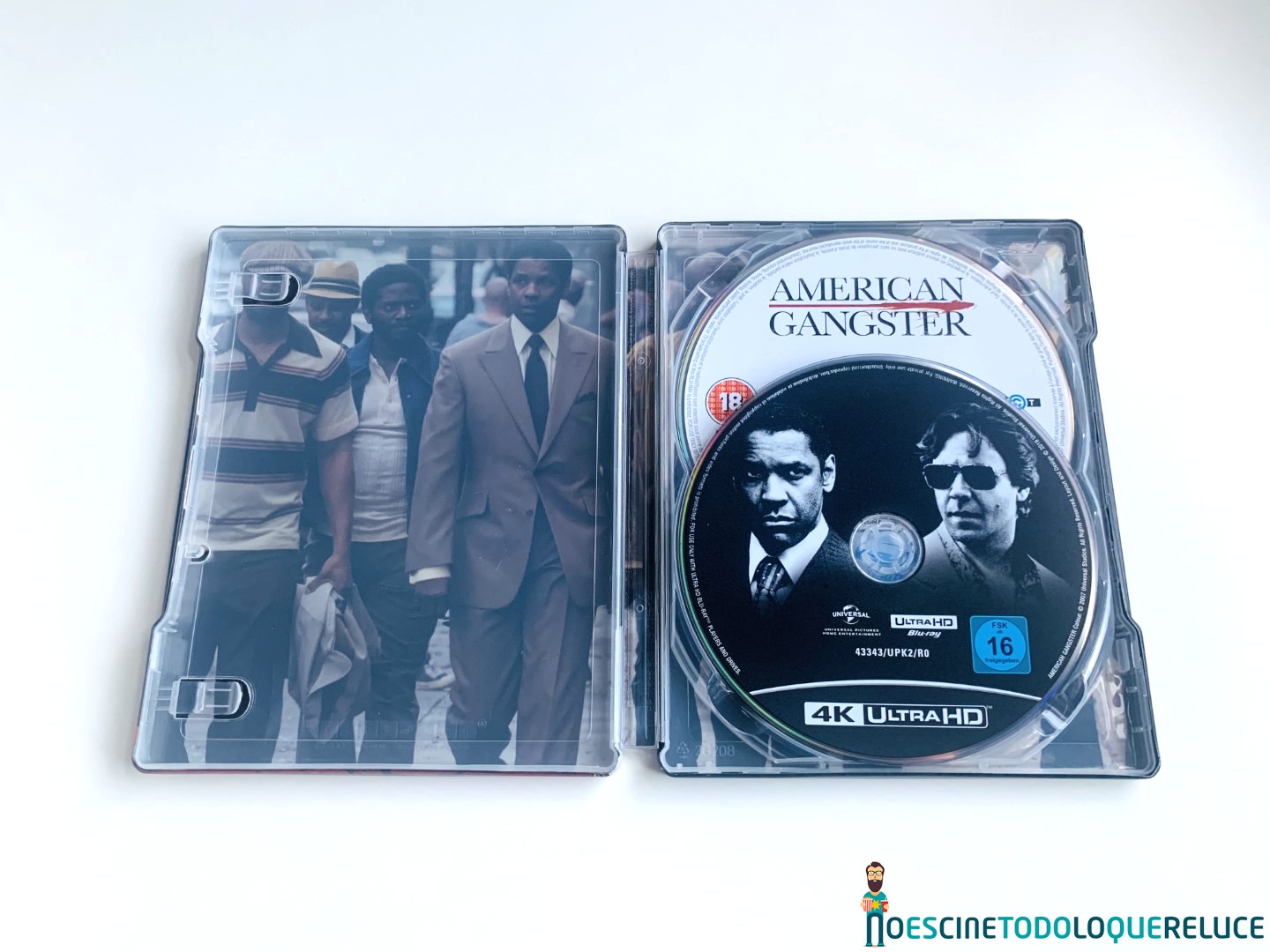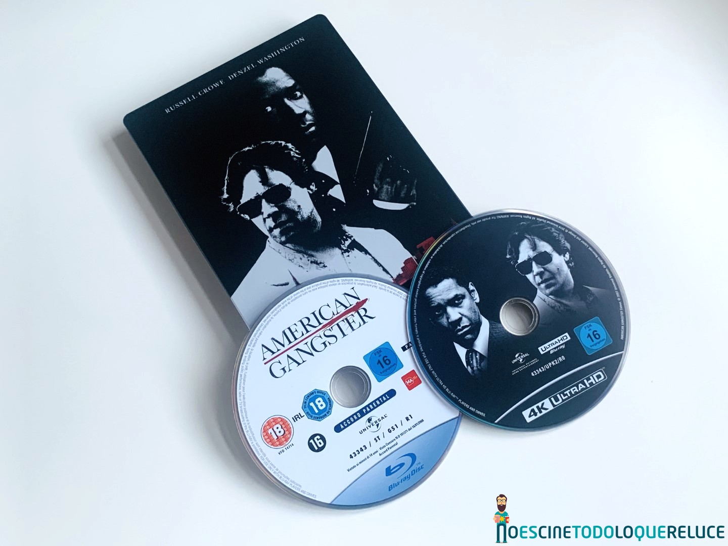 Aprovechando su reciente lanzamiento, os ofrecemos el análisis y un reportaje fotográfico de la edición metálica limitada de American Gangster que incluye discos 4K UHD y Blu-ray. El disco 4K UHD incluye la película en versión cinematográfica, pero también la versión extendida en versión original con 18 minutos adicionales de metraje. Por parte del disco Blu-ray, también incluye la versión comercial y la ampliada.