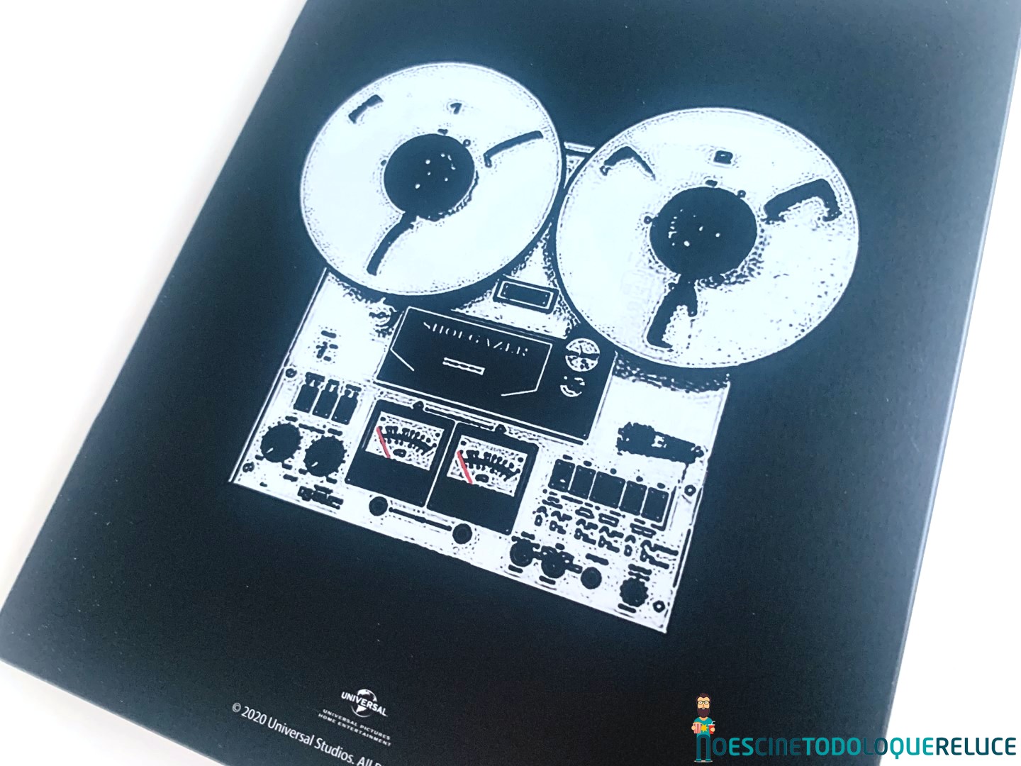 El diseño de portada y contraportada es minimalista, en blanco y negro. En portada tenemos una imagen casi idéntica de uno de los pósters de la película, con los dos protagonistas en blanco y negro, y tan solo el detalle de la ciudad en rojo en la parte inferior del mismo. La contraportada nos muestra tan sólo un grabador de audio antiguo también en blanco y negro, y el lomo es donde nos muestran el título de la película.