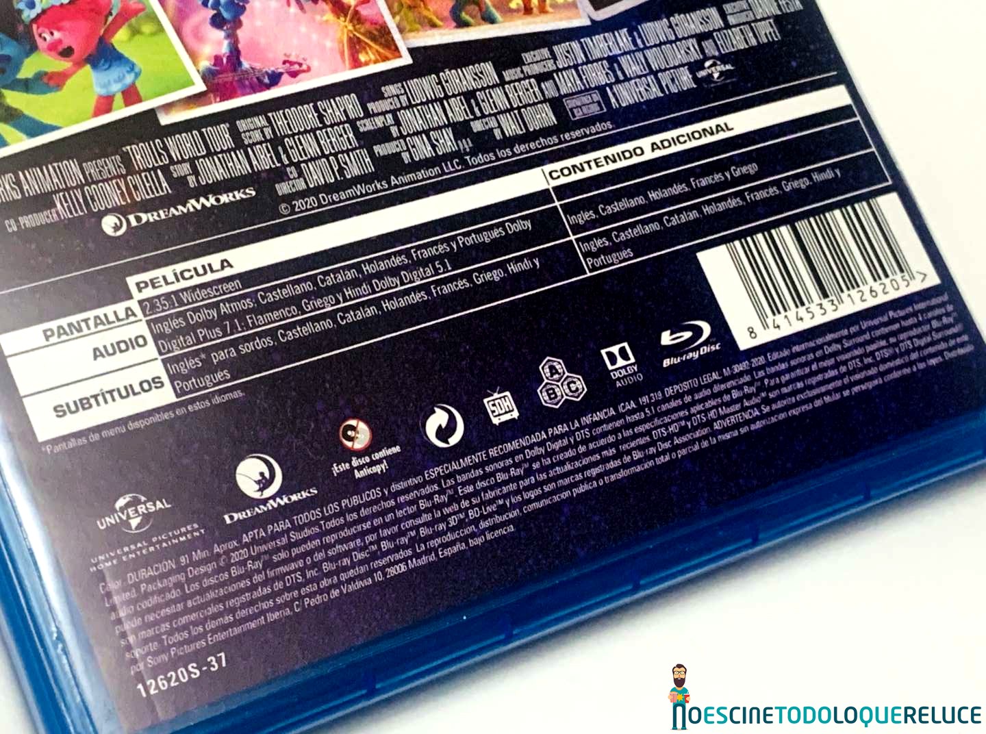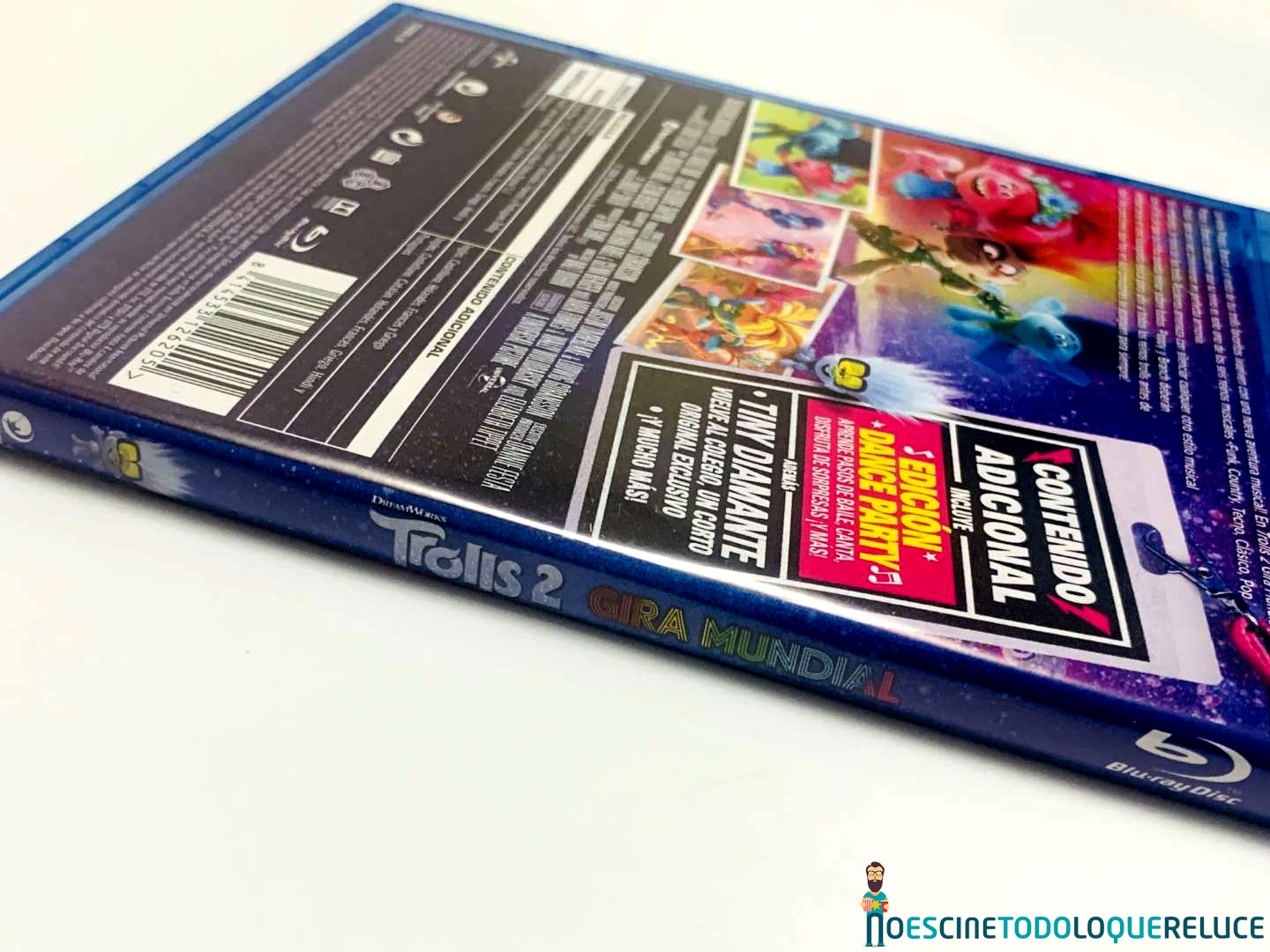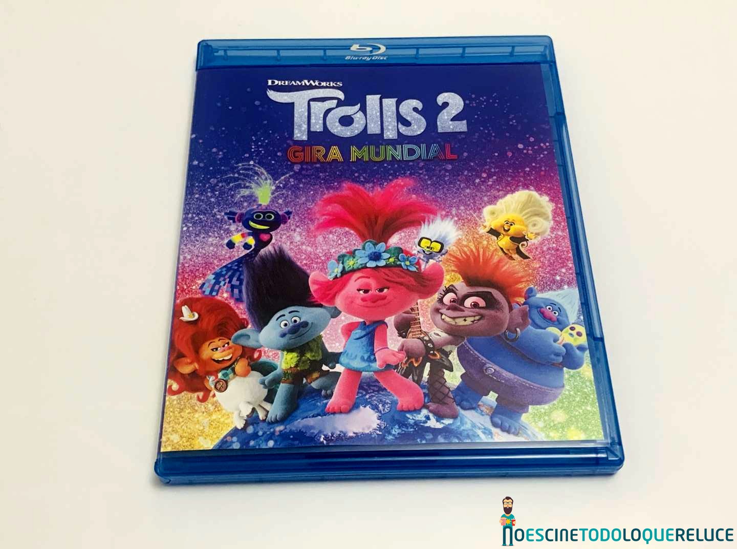 La edición Blu-ray de Trolls 2: Gira mundial está presentada en el clásico estuche amaray azul, con el póster en la portada, mientras que la contraportada nos presenta una selección de imágenes de la película junto a los datos técnicos, artísticos y sinopsis. En el interior del estuche nos encontramos el disco Blu-ray serigrafiado con una imagen de uno de los protagonistas.