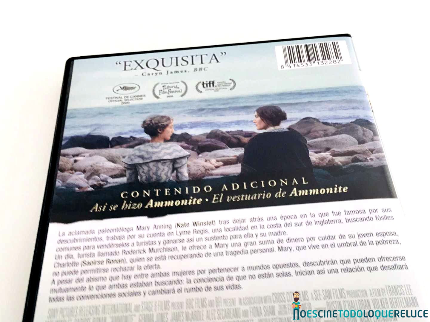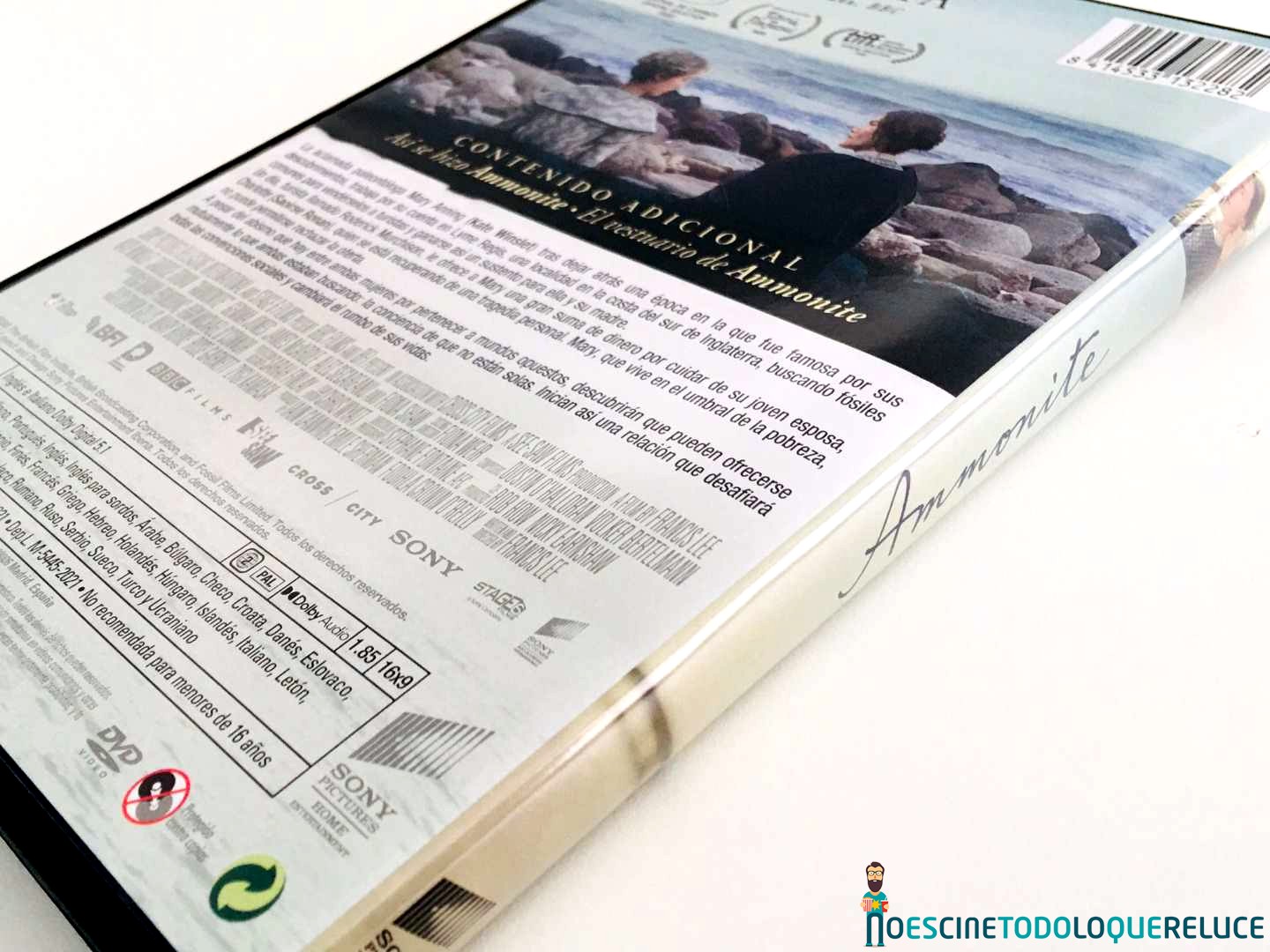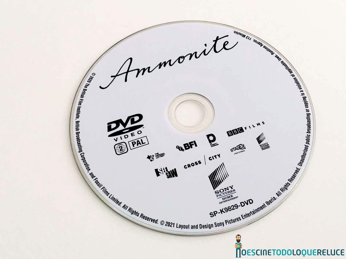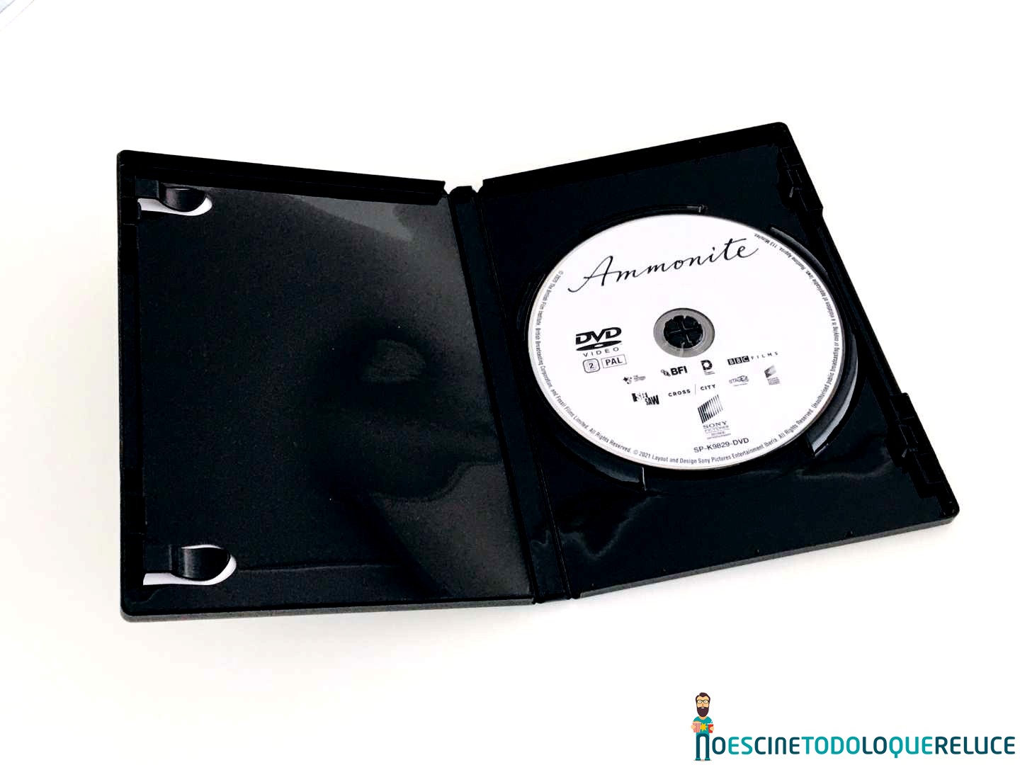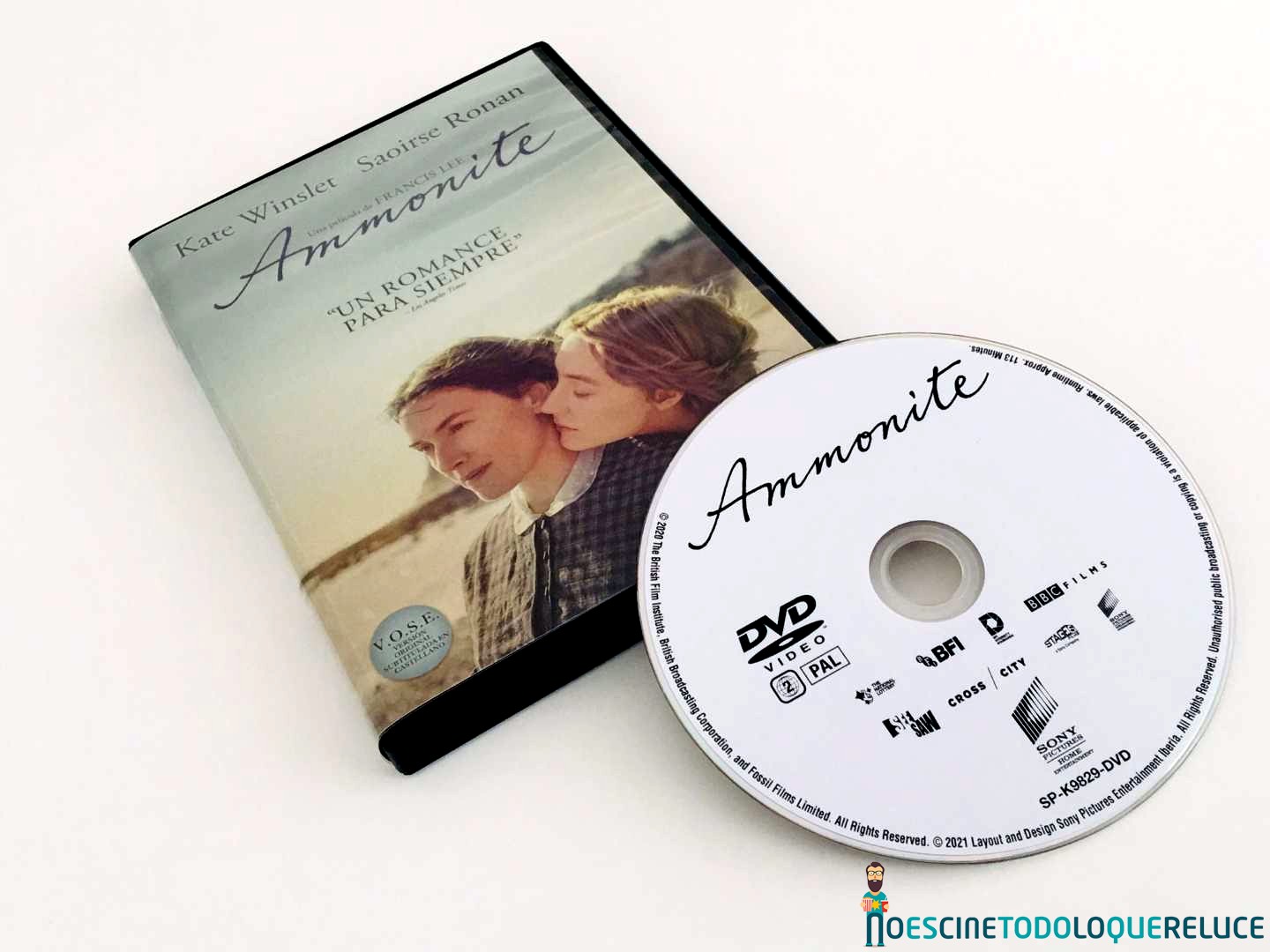La edición DVD de Ammonite está presentada en el clásico estuche negro, con el póster en la portada, mientras que la contraportada nos presenta una imagen de la película junto a los datos técnicos, artísticos y sinopsis. En el interior del estuche nos encontramos el disco DVD tan sólo serigrafiado con el título y datos de producción y distribución.