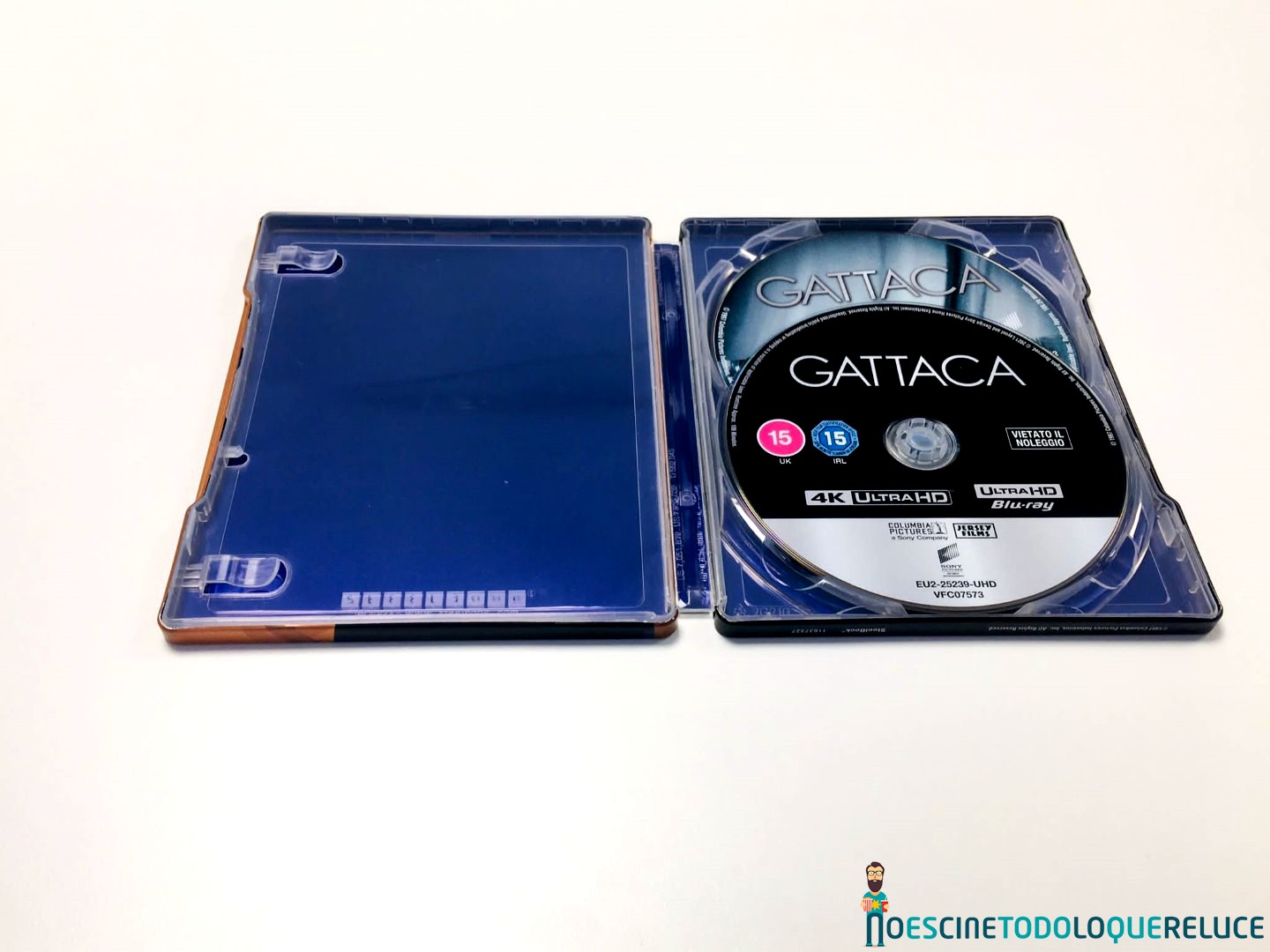 Este SteelBook de diseño exclusivo de Gattaca contiene un disco 4K UHD y un disco Blu-ray, incluyendo el primero de ellos la película y el tráiler de cines, mientras que el disco Blu-ray incluye la película junto con muchos más extras.