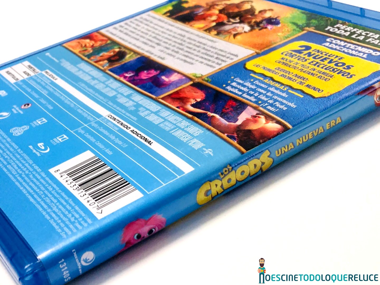 La edición Blu-ray de Los Croods: Una nueva era está presentada en el clásico estuche amaray azul, con el póster en la portada, mientras que la contraportada nos presenta una selección de imágenes de la película junto a los datos técnicos, artísticos y sinopsis. En el interior del estuche nos encontramos el disco Blu-ray serigrafiado con una imagen sacada de la portada.
