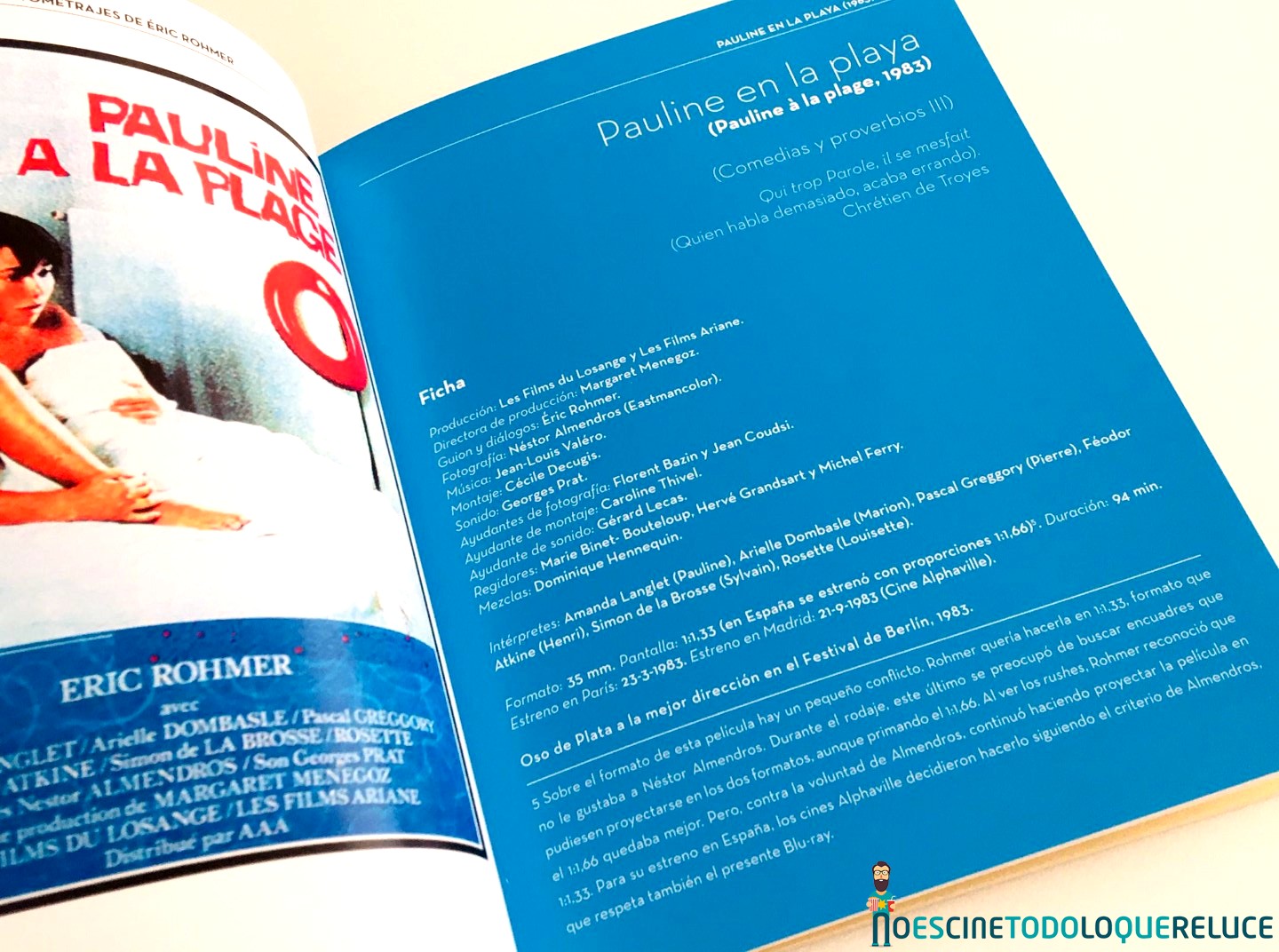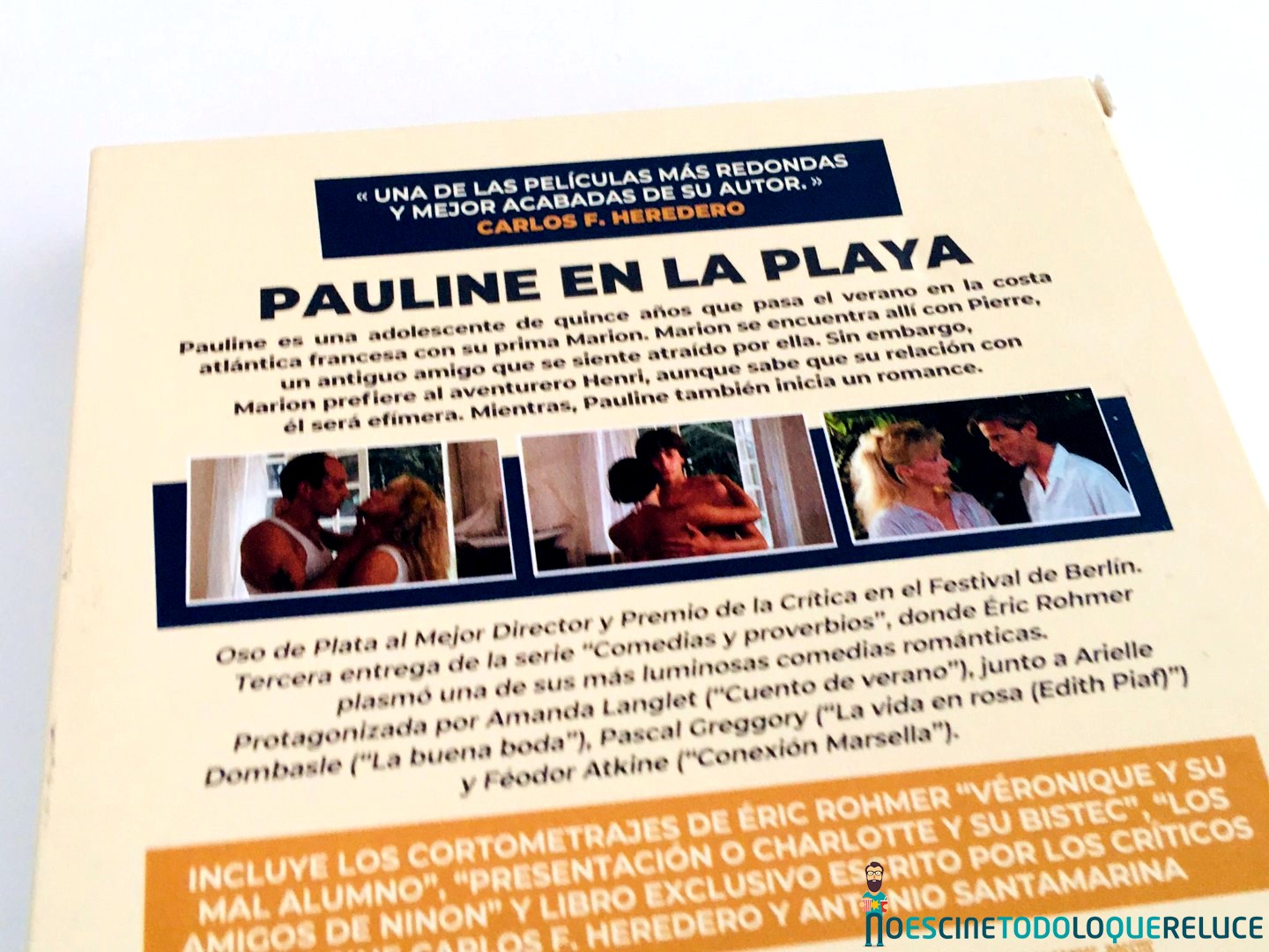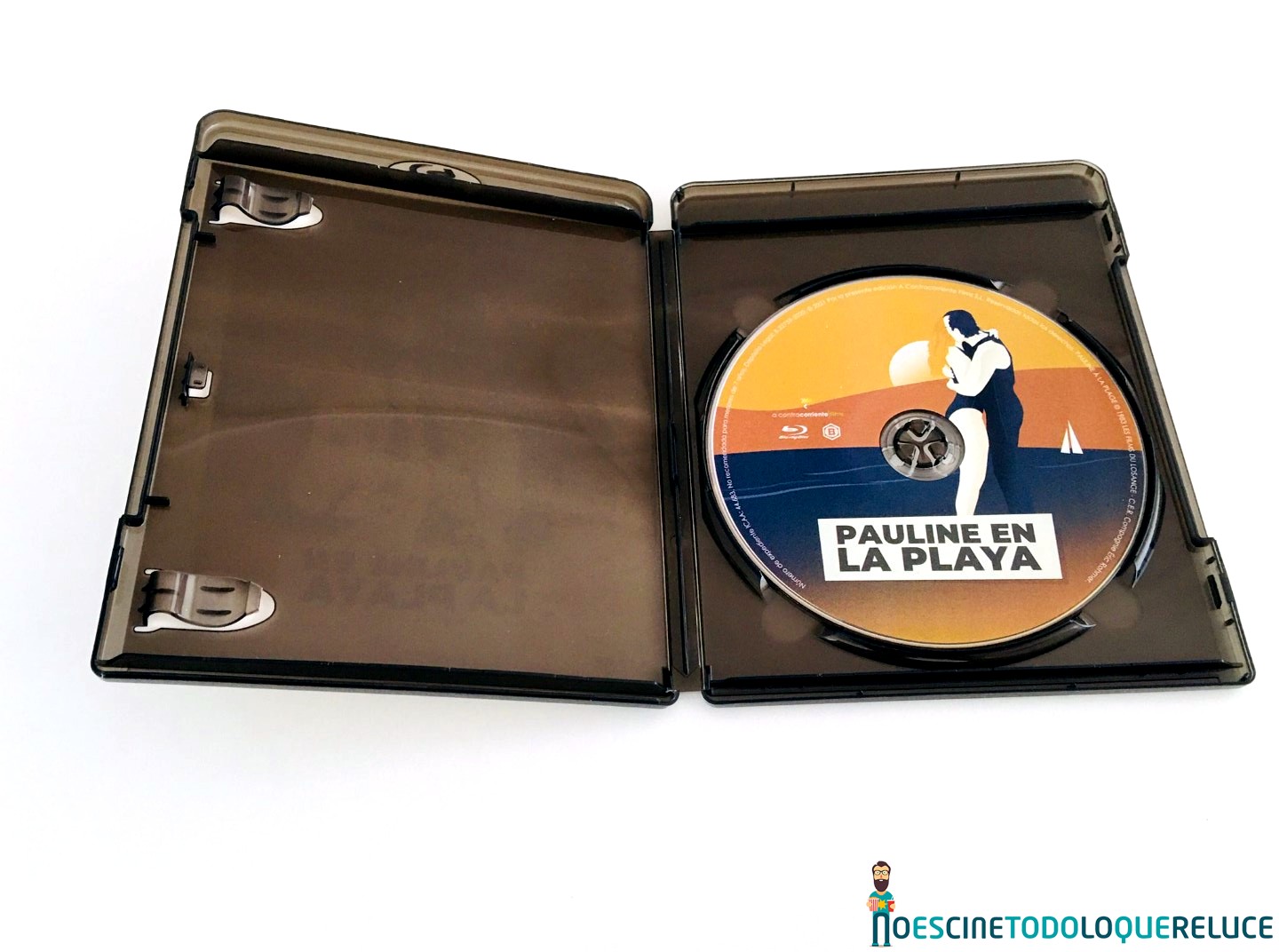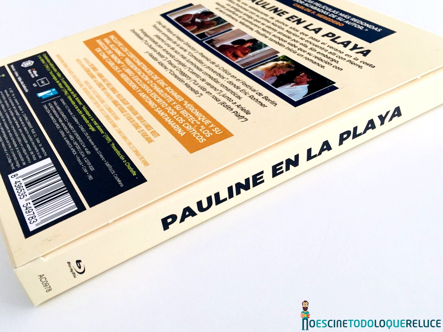 La edición Blu-ray de Pauline en la playa está presentada con una funda rígida. En su interior alberga un estuche negro translucido y un libreto. Tanto funda como estuche tienen el mismo diseño de portada y contraportada, con una elegante ilustración en portada, y una selección de imágenes de la película junto a datos técnicos, artísticos y sinopsis en la contraportada. El disco tiene una serigrafía a juego con la edición, como el libreto de 54 páginas, escrito por Carlos F. Heredero y Antonio Santamarina (Caimán Cuadernos de Cine).