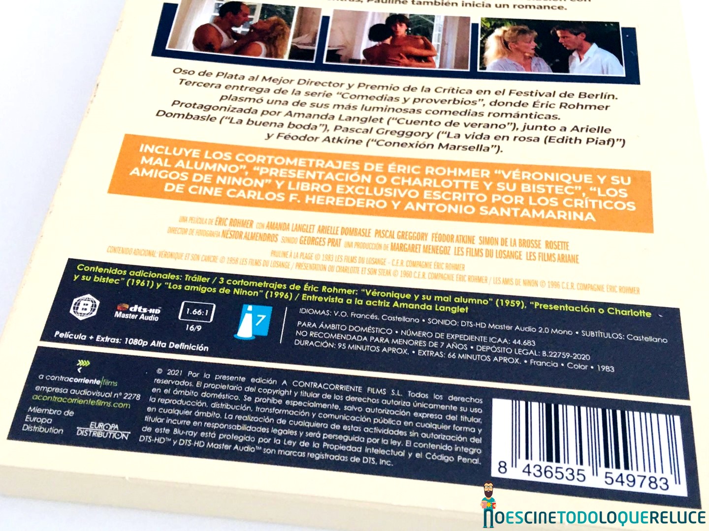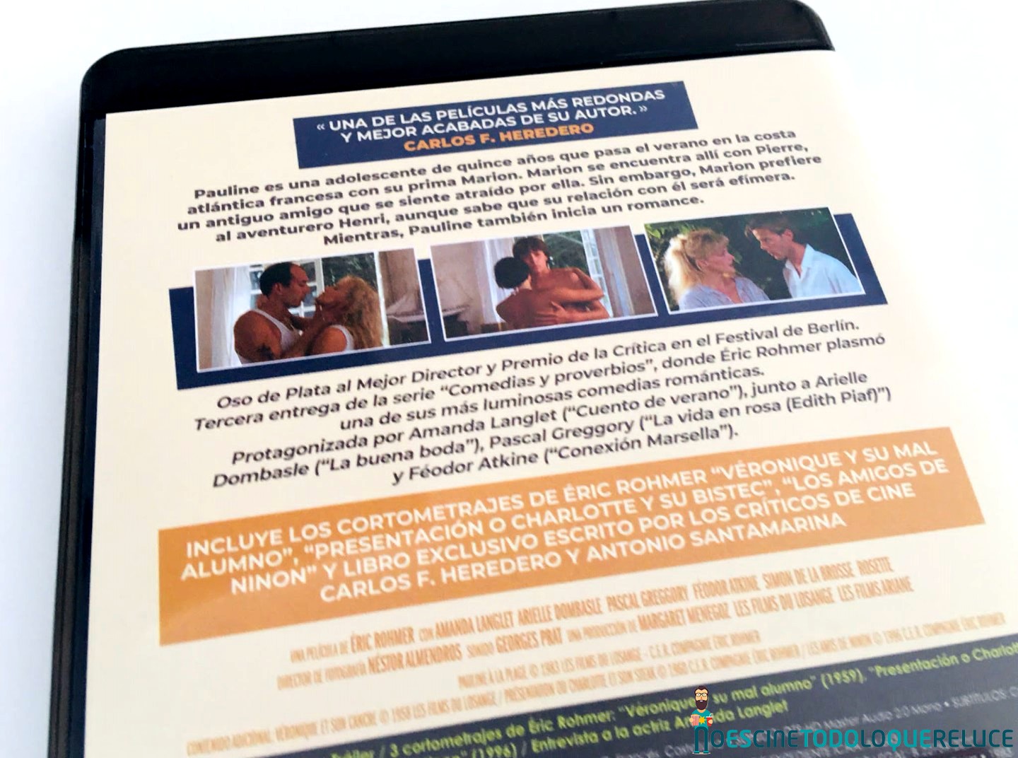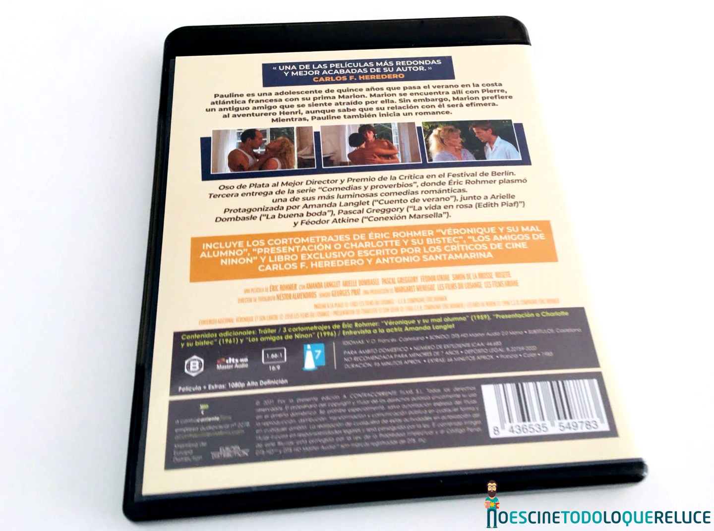 - Entrevista a la actriz Amanda Langlet (0:11:22). Éric Rohmer vio la foto de la joven Amanda Langlet en la Societé Française de Production y la convocó a una reunión. Durante meses quedaron casi cada semana, hasta que ella finalmente le preguntó si la había elegido para su nuevo proyecto. El director le confesó que había tomado la decisión desde el principio y que había usado sus citas para observarla en su cotidianeidad. La actriz recuerda también en esta pieza, grabada por Potemkine en 2013, que Rohmer decidió cambiar el título de la película poco antes del estreno, al comprobar que el personaje de Pauline había acabado adquiriendo una importancia no prevista.