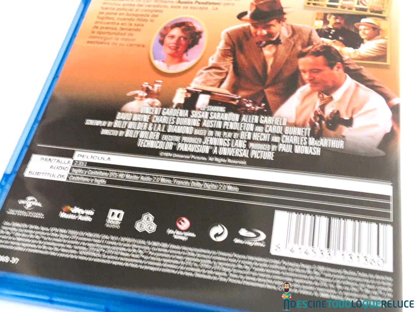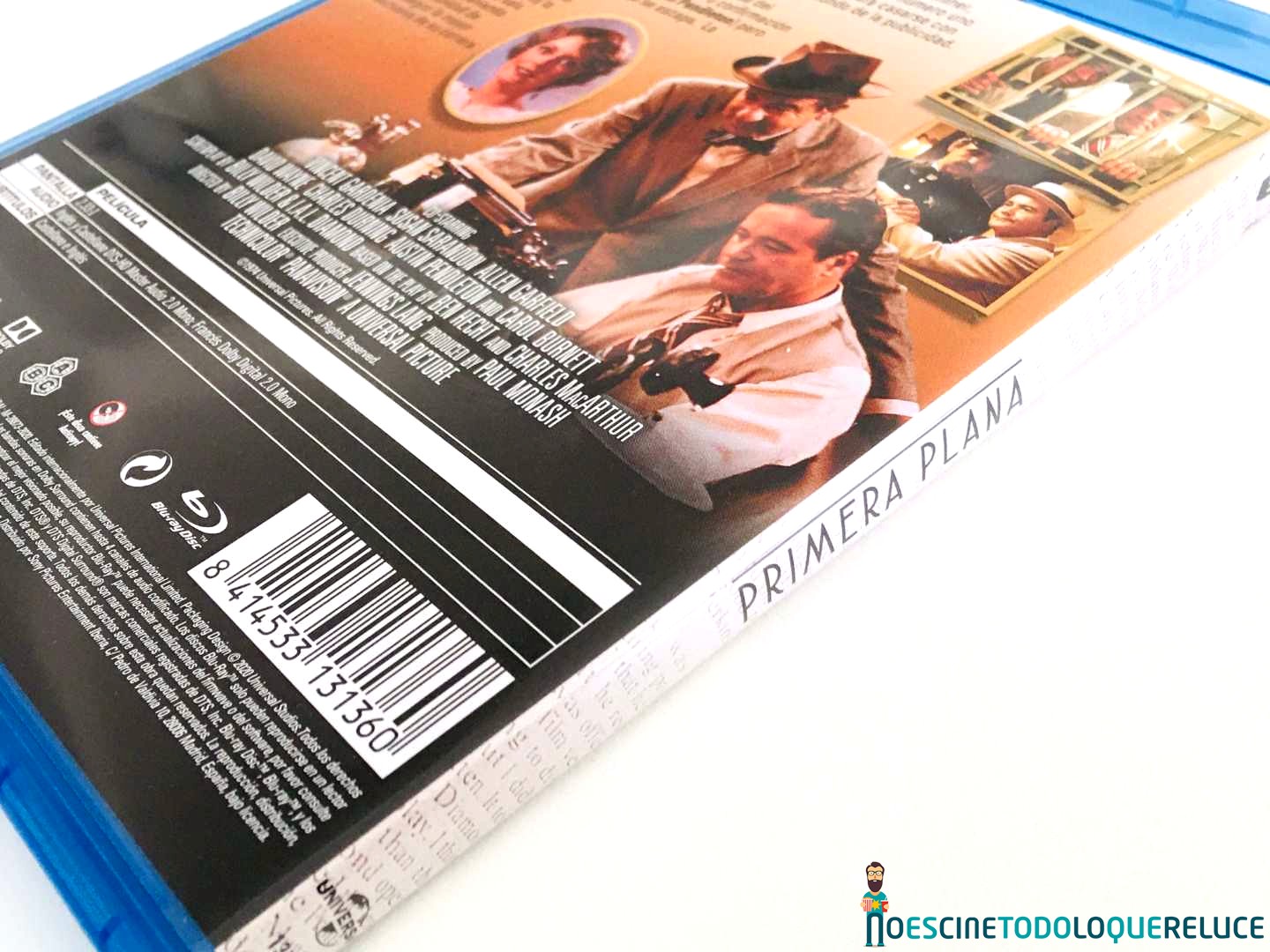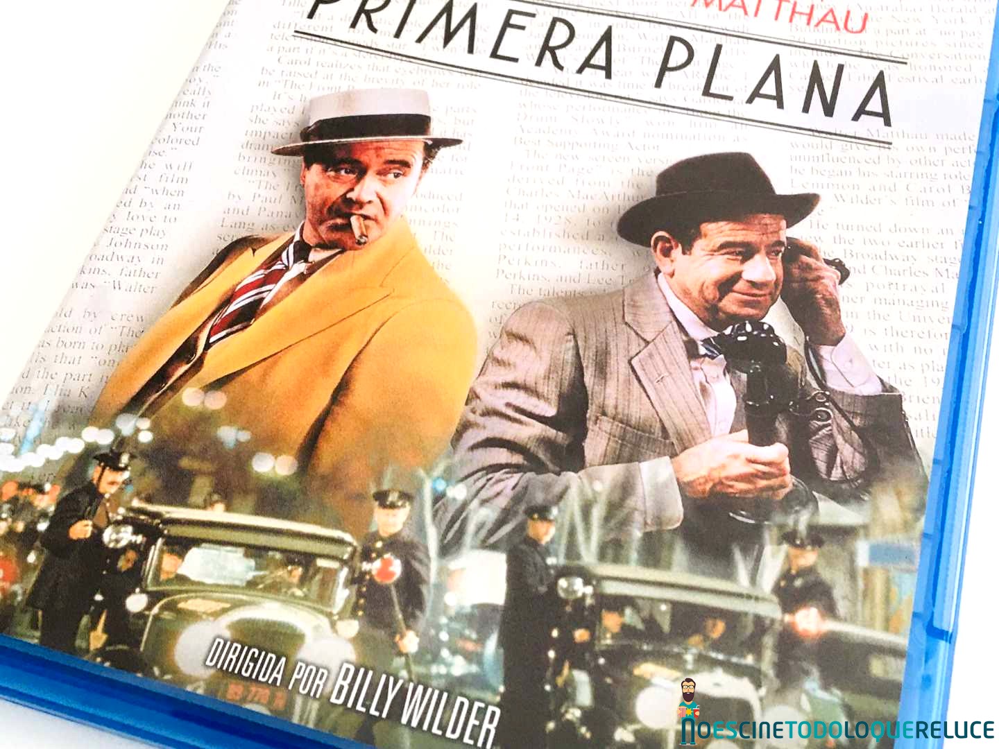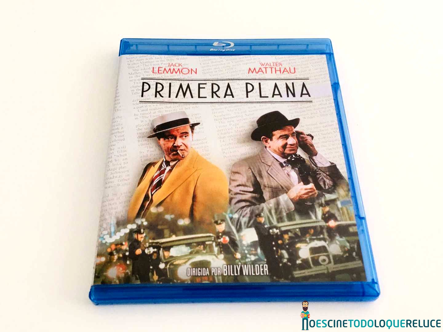 La edición Blu-ray de Primera plana está presentada en el clásico estuche amaray azul, con una versión actualizada del póster en la portada, mientras que la contraportada nos presenta una selección de imágenes de la película junto a los datos técnicos, artísticos y sinopsis. En el interior del estuche nos encontramos el disco Blu-ray serigrafiado con una imagen sacada de la portada.