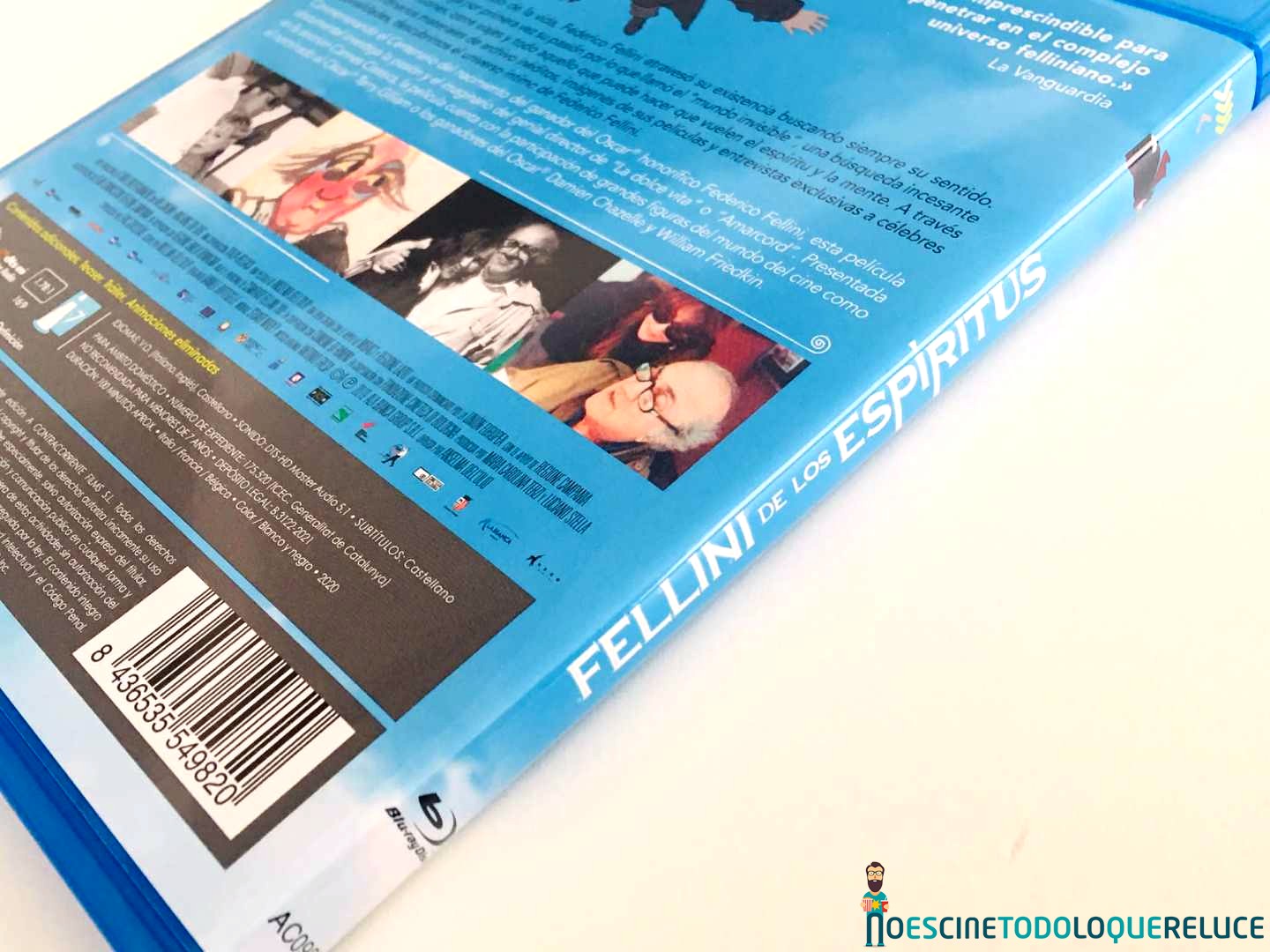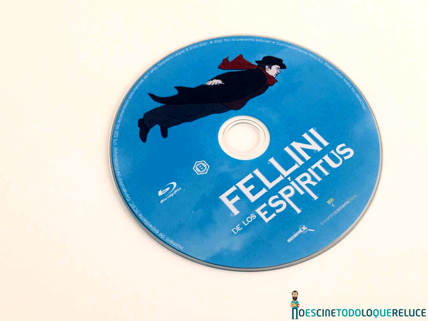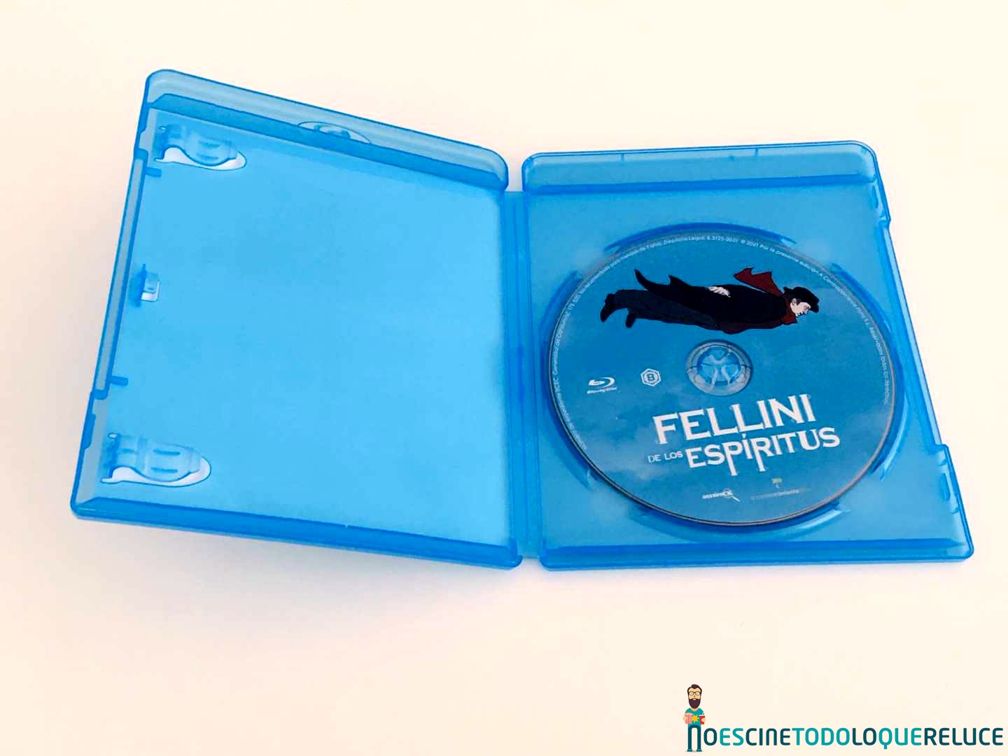 La edición Blu-ray de Fellini de los espíritus está presentada en el clásico estuche amaray azul, con el póster en la portada, mientras que la contraportada nos presenta una selección de imágenes de la película junto a los datos técnicos, artísticos y sinopsis. En el interior del estuche nos encontramos el disco Blu-ray serigrafiado con una imagen sacada de la portada.