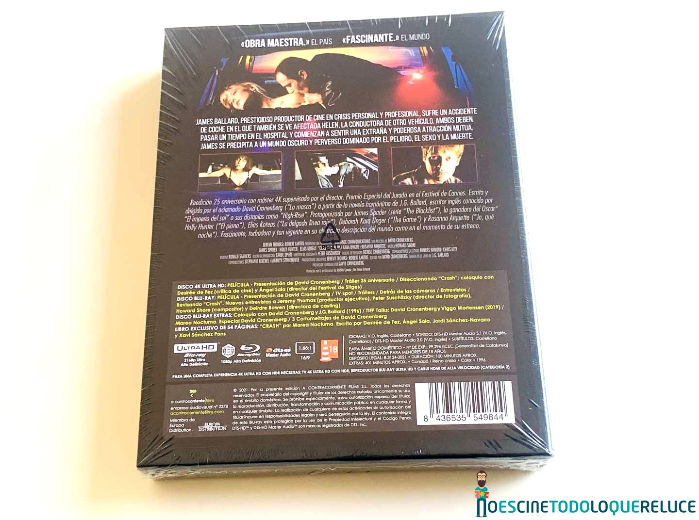 Ya está a la venta Crash de la mano de A Contracorriente Films, y aprovechando el lanzamiento de su edición 25º aniversario en 4K UHD y Bluray os ofrecemos en este artículo un reportaje fotográfico así como más detalles de esta completa edición de una película fascinante, turbadora y tan vigente en su abstracta descripción del mundo como en el momento de su estreno.