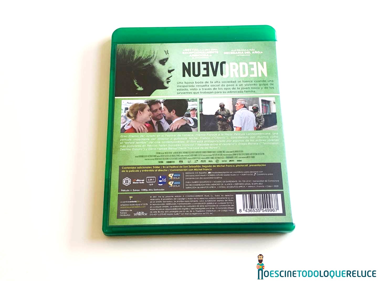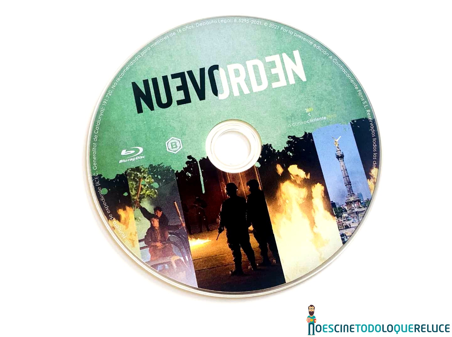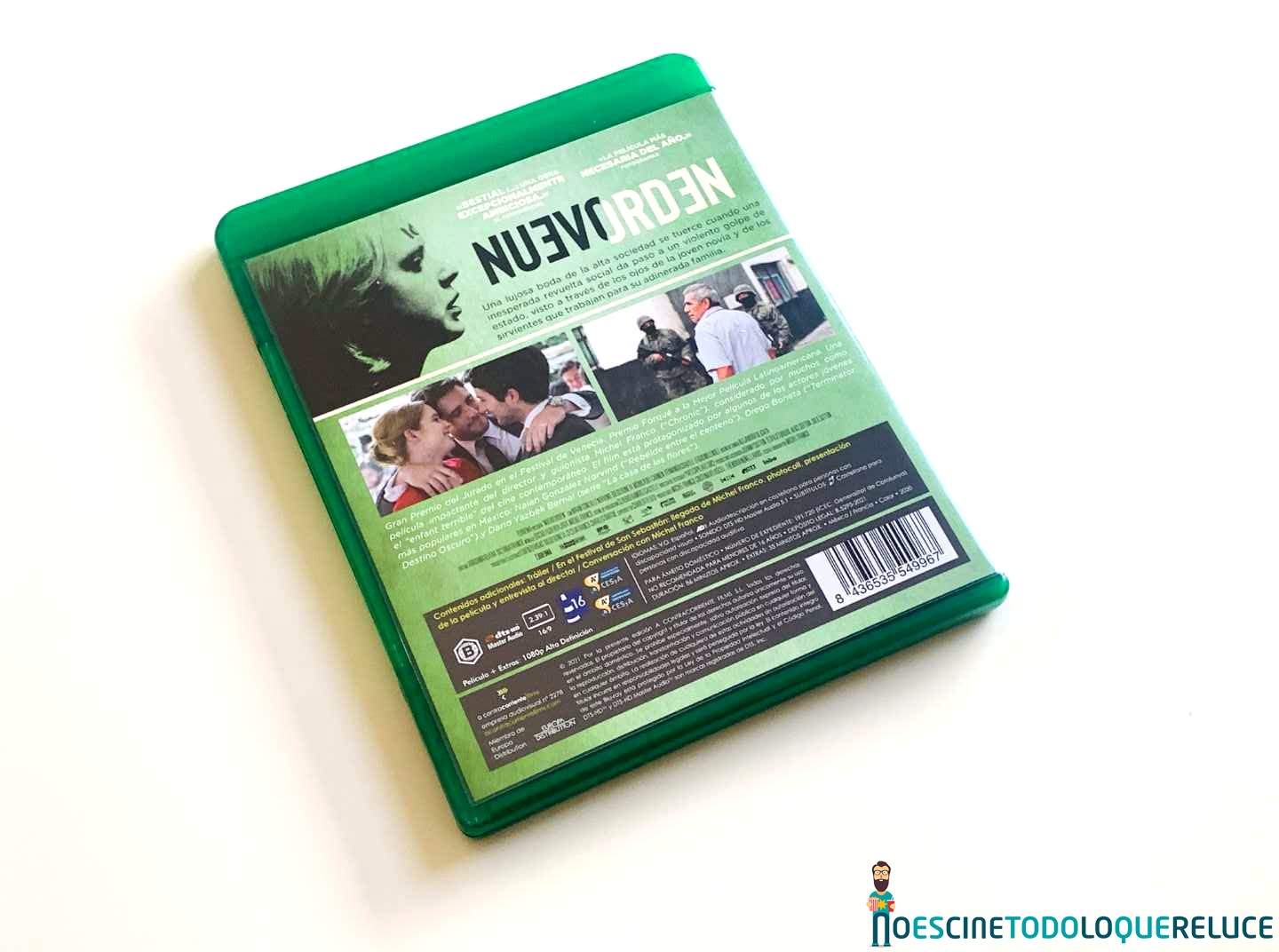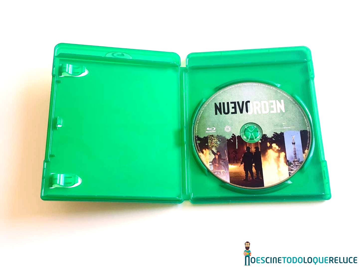 La edición Blu-ray de Nuevo orden está presentada en un estuche amaray verde, a juego con el póster de la película que luce en la portada, mientras que la contraportada nos presenta una selección de imágenes de la película junto a los datos técnicos, artísticos y sinopsis. En el interior del estuche nos encontramos el disco Blu-ray serigrafiado con una imagen sacada de la portada.