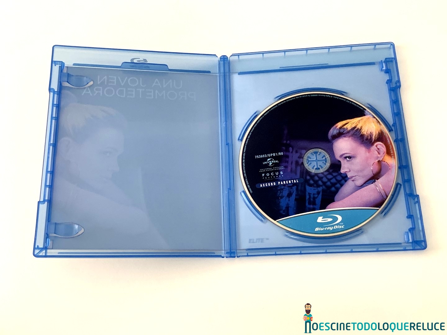 La edición Blu-ray de Una joven prometedora está presentada en el clásico estuche amaray azul, con el póster español en la portada, mientras que la contraportada nos presenta una selección de imágenes de la película junto a los datos técnicos, artísticos y sinopsis. En el interior del estuche nos encontramos el disco Blu-ray serigrafiado con la imagen de la portada.