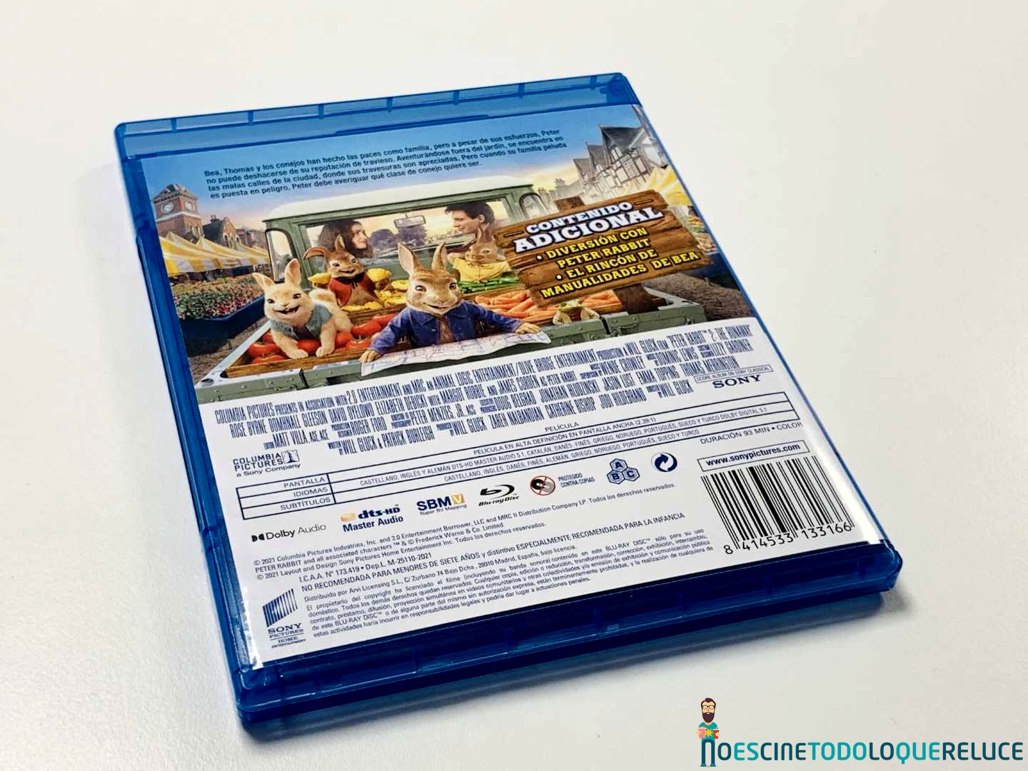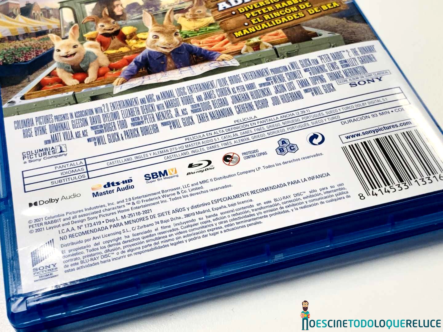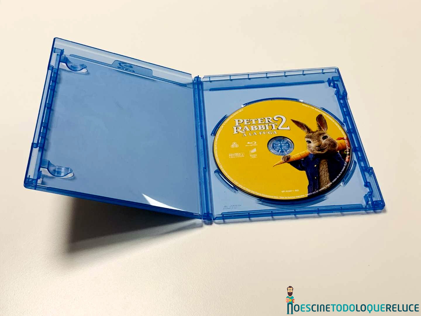 La edición Blu-ray de Peter Rabbit 2: A la fuga está presentada en el clásico estuche azul de este formato, con el póster español en la portada, mientras que la contraportada nos presenta una imagen de los protagonistas de la película junto a los datos técnicos, artísticos y sinopsis. En el interior del estuche nos encontramos el disco Blu-ray serigrafiado con una imagen de Peter.