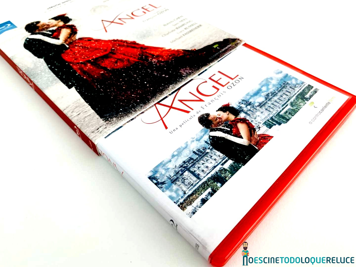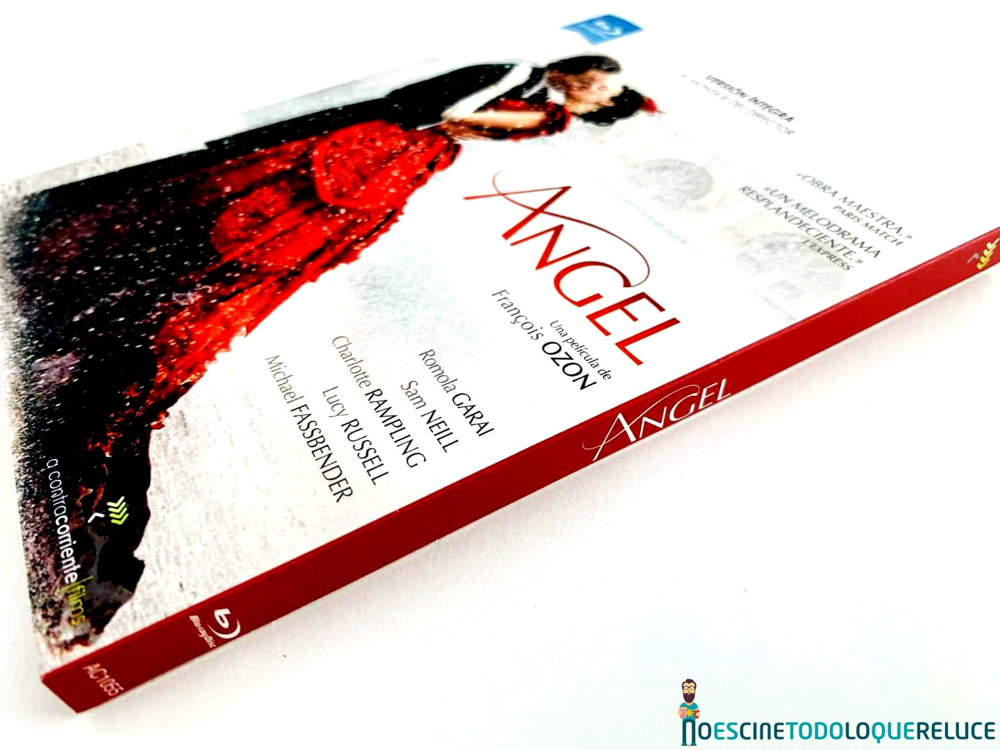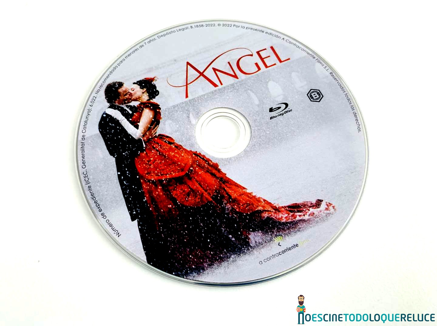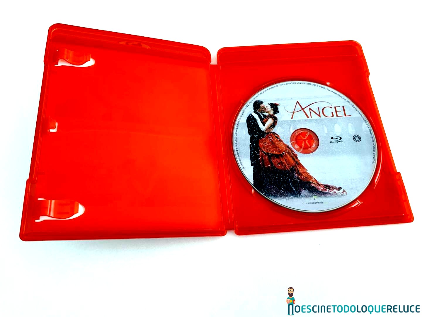 La edición Blu-ray de Ángel está presentada con una funda, como es habitual en muchos títulos de A Contracorriente Films. En su interior alberga un estuche rojo, a juego con el vestido que luce la protagonista en la portada. Funda y estuche lucen distinta portada, aunque manteniendo una uniformidad, mientras que la contraportada de la funda incorpora una imagen adicional a la del estuche, junto a los datos técnicos, artísticos y sinopsis. En el interior del estuche nos encontramos el disco Blu-ray con la misma imagen de la portada de la funda.